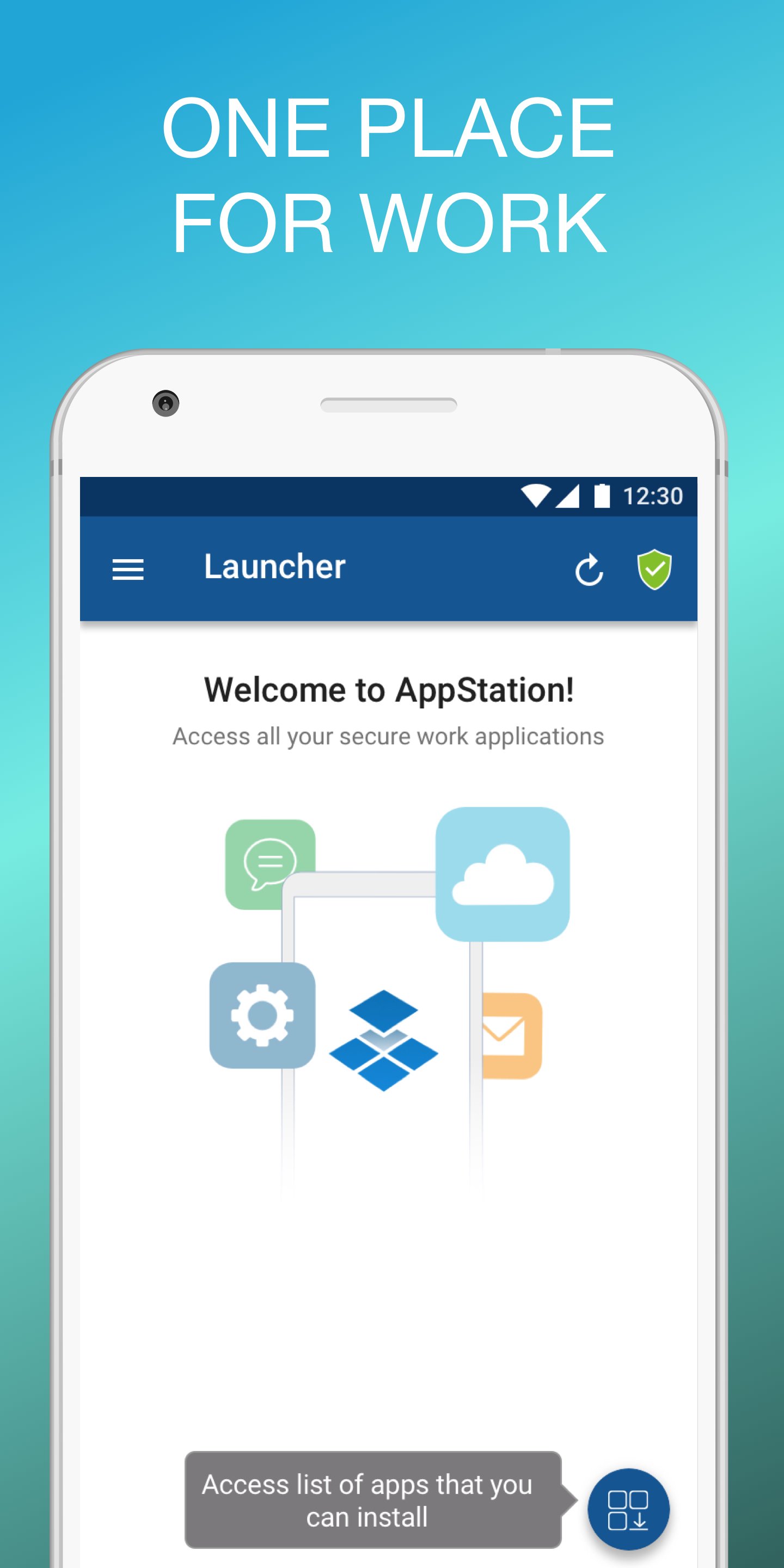 Dengan hanya beberapa langkah cepat, AppStation mempermudah akses ke sumber korporat pada peranti Android anda: