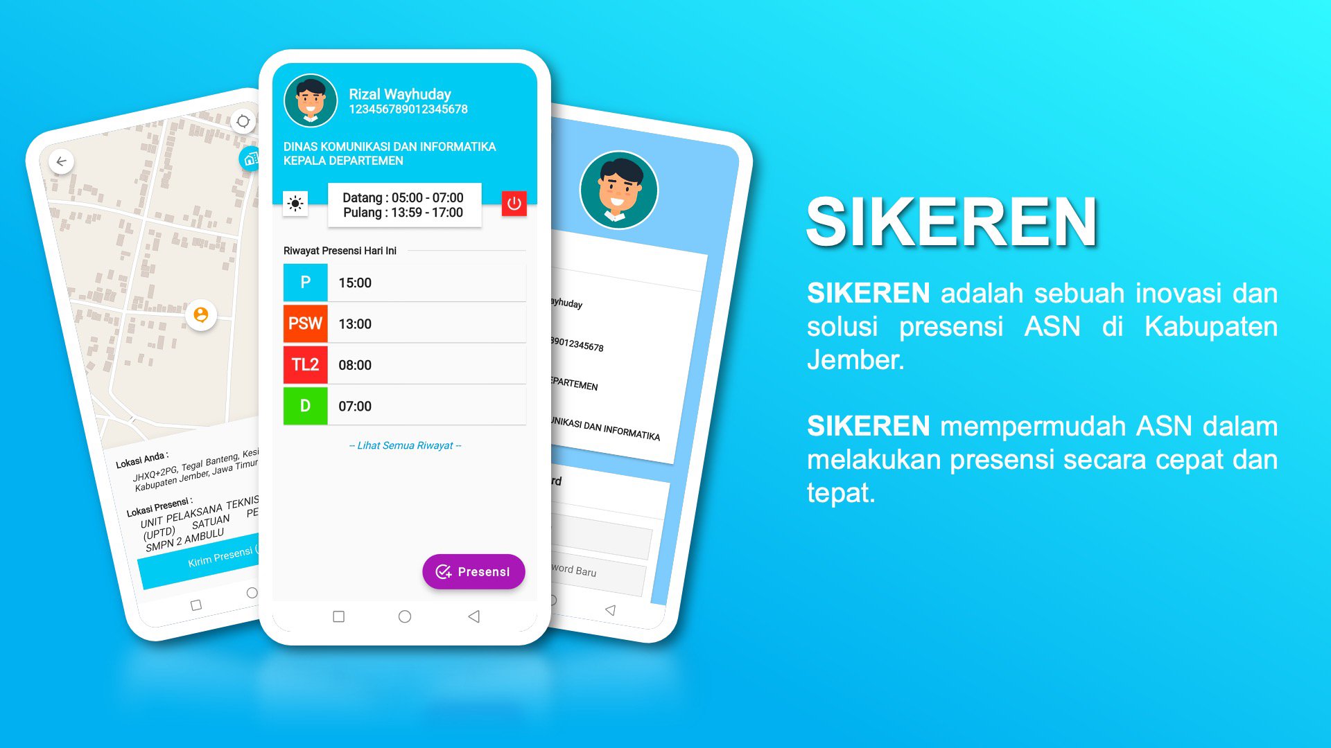 SIKEREN merupakan aplikasi presensi untuk ASN Kabupaten Jember.