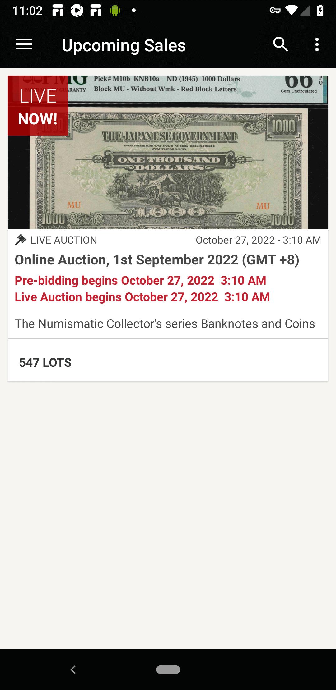 Dengan apl lelongan kami, anda boleh pratonton, menonton dan membida dalam lelongan kami daripada peranti mudah alih / tablet anda. Sertai jualan kami semasa dalam perjalanan dan dapatkan akses kepada ciri berikut kami: