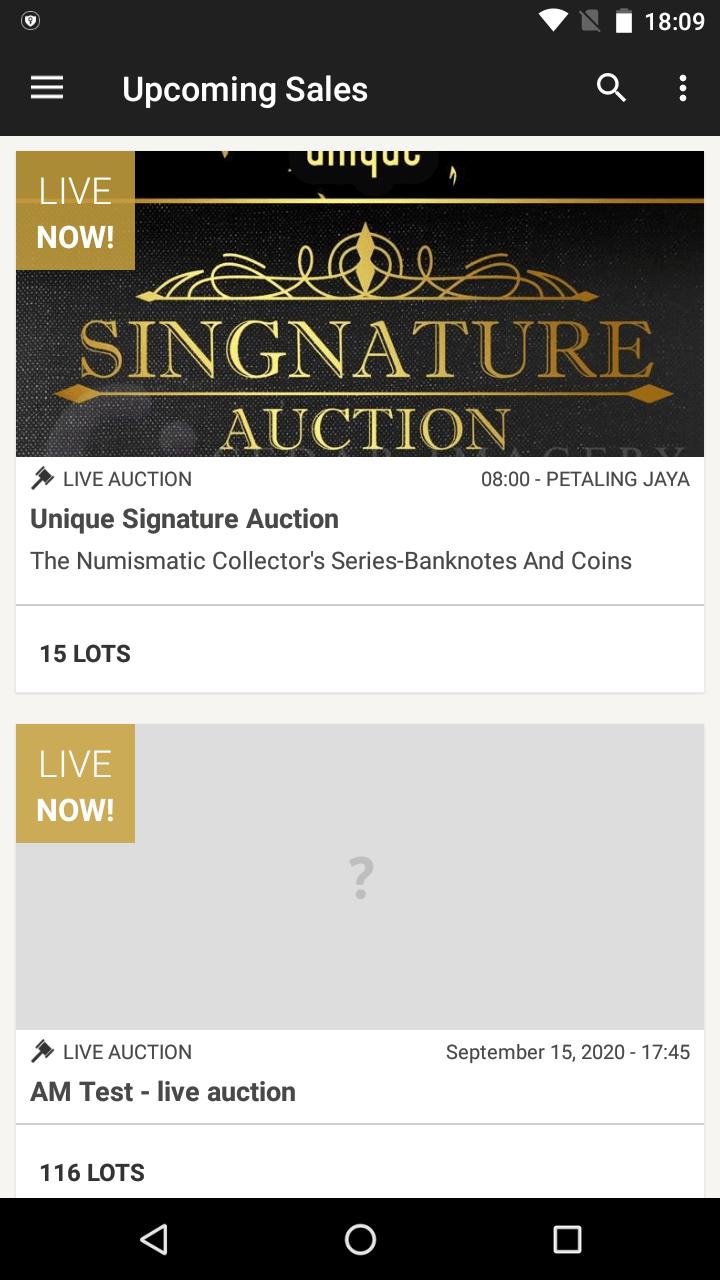 Unique Auctions, datang daripada pembangun Auction Mobility, sedang berjalan pada sistem Android pada masa lalu.