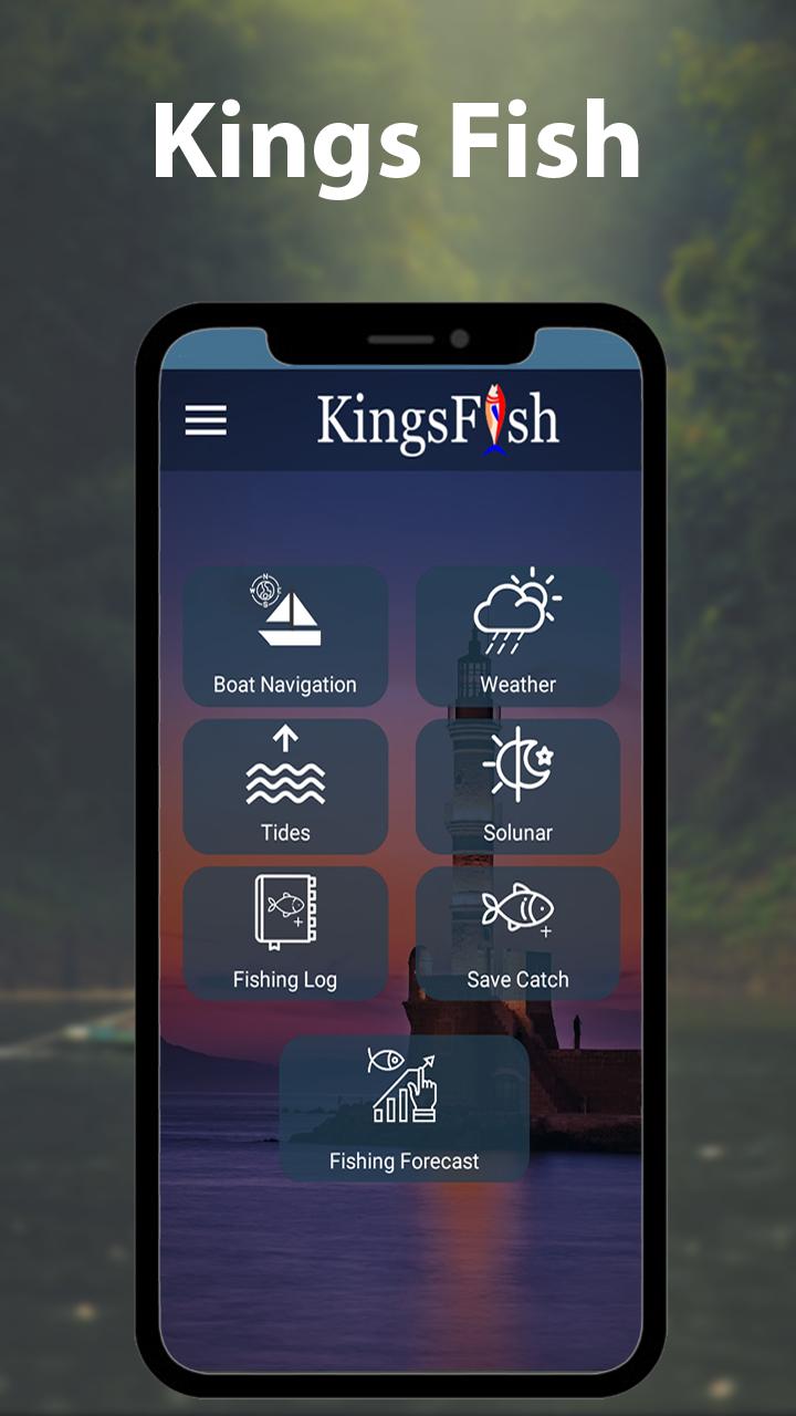 KingsFish: Memancing Peta Memancing Percuma direka untuk membantu pemancing pemula dan berpengalaman. Aplikasi memancing ini membantu anda mengatur dan merancang perjalanan memancing anda dengan cara yang memaksimumkan kadar kejayaan penangkapan ikan di laut, sungai, dan tasik.