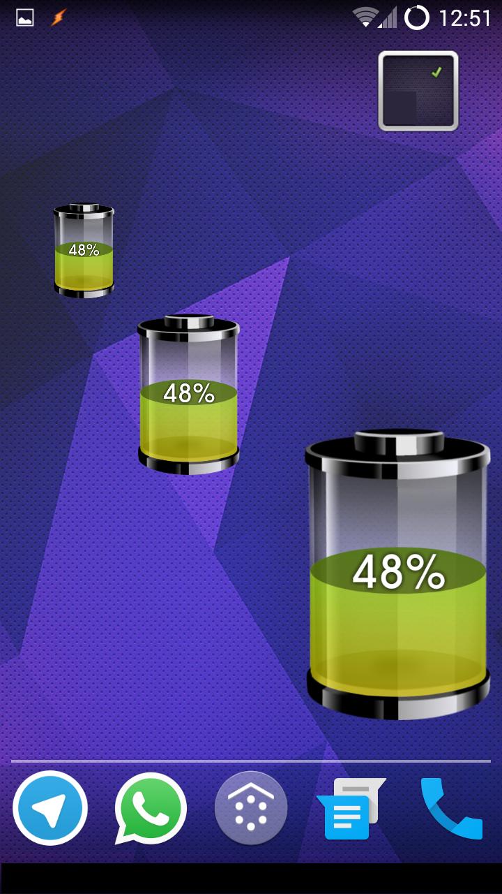 Menunjukkan peratusan bateri dalam widget dan jenis sambungan.