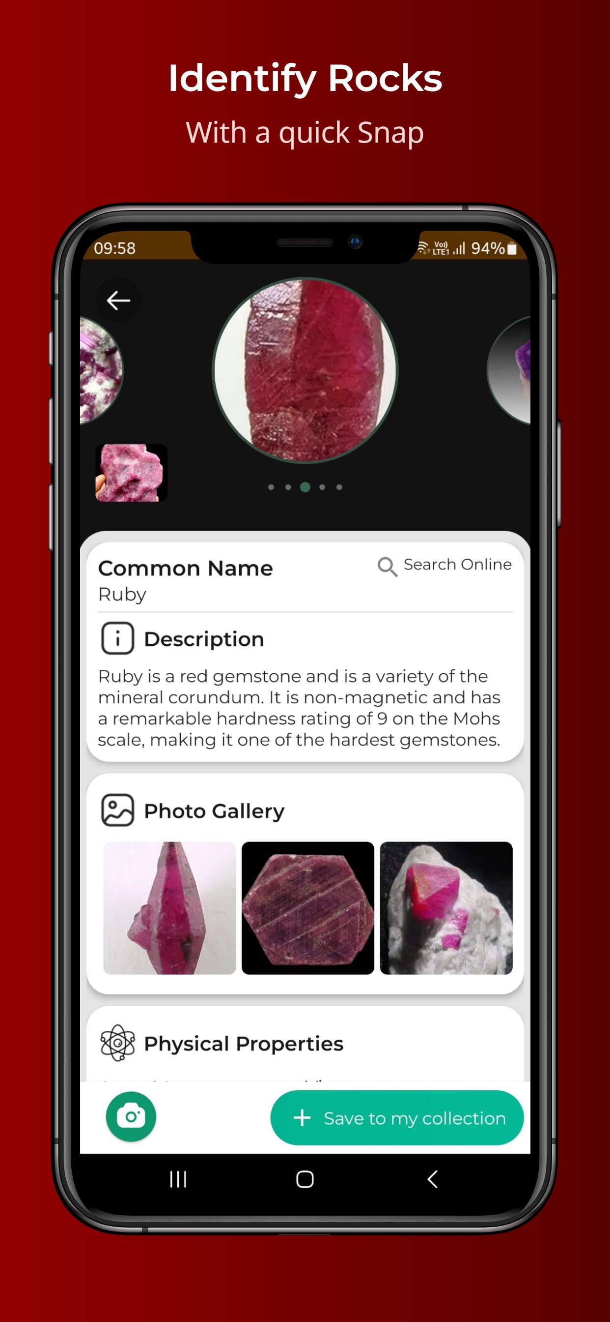 Sama ada anda sedang mendaki di gunung, berjalan-jalan di pantai, atau sekadar ingin tahu tentang kerikil di halaman anda, pengenal batu adalah aplikasi pilihan anda untuk memahami dunia berbatu di bawah kaki kita. Ubah peranti anda menjadi makmal geologi mudah alih dan mulakan penerokaan keajaiban yang terdapat dalam kerak Bumi hari ini! Tiada pengetahuan geologi terdahulu diperlukan; ia sangat baik untuk pelajar dari semua peringkat umur.