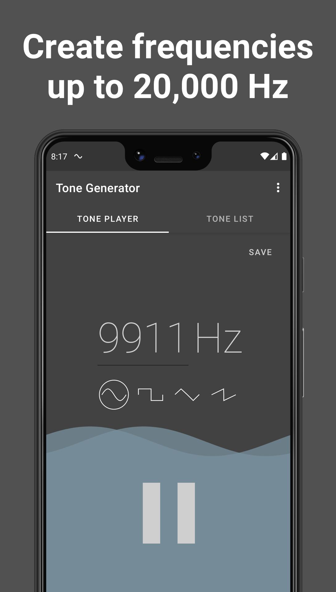 Penjana Nada membantu anda membina & memainkan gelombang bunyi tersuai. Aplikasi ini membolehkan anda membuat bunyi dari frekuensi rendah sepanjang jalan ke frekuensi tinggi.
