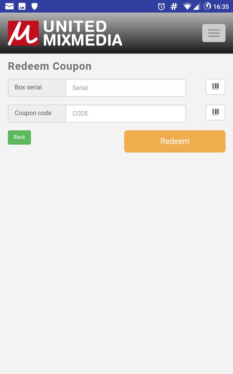 Aplikasi ini membolehkan anda melihat status langganan anda yang sedang aktif pada United Mix Media Set-Top-Box anda serta pengisian dan melanjutkan kontrak anda dengan memasukkan kupon dibeli.