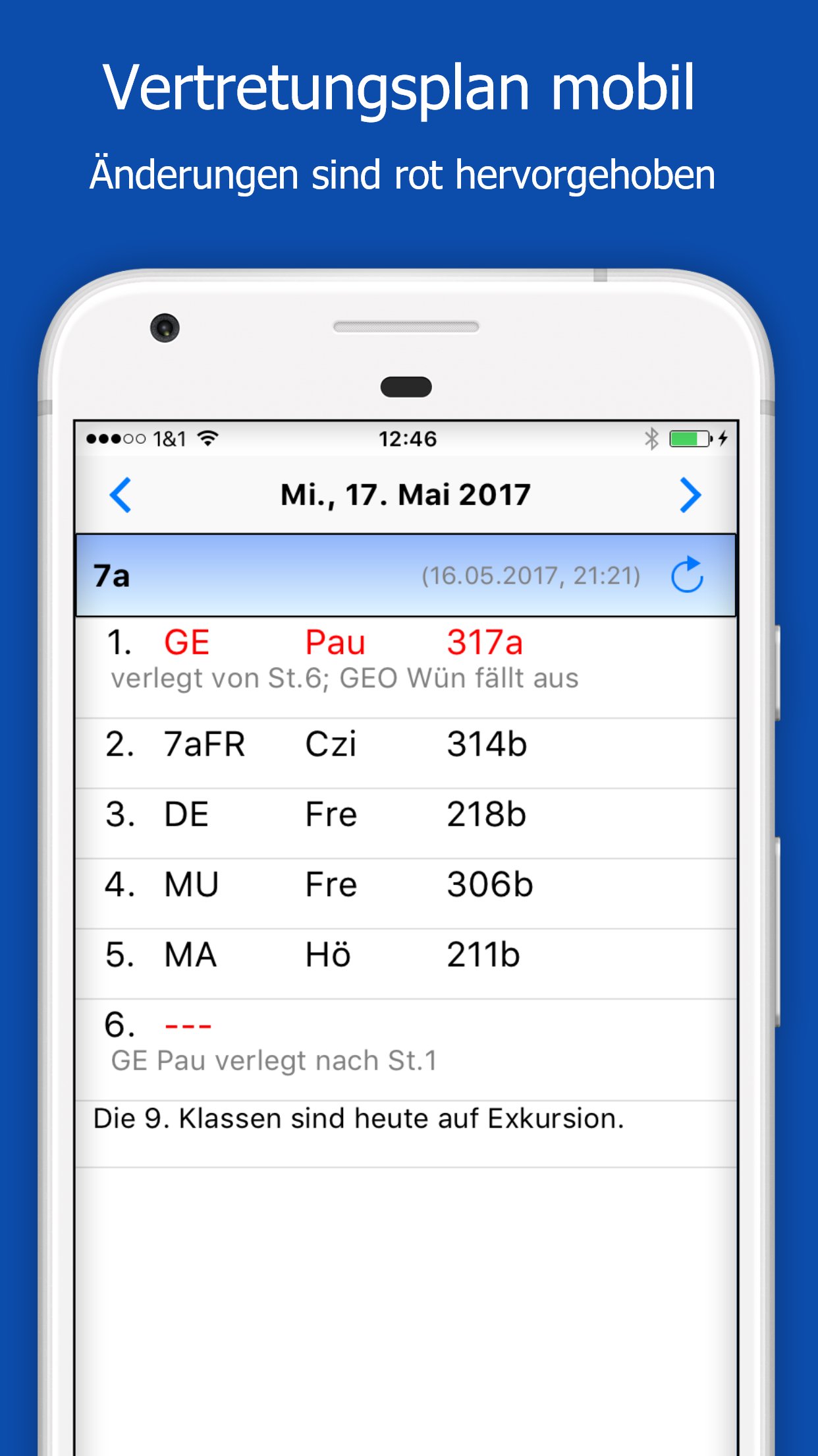 termasuk semua perwakilan - - Dengan aplikasi ini, jadual waktu semasa kelas atau satu tin guru untuk sekolah-sekolah yang menggunakan perancang pendidikan Indiware dan modul Indiware mudah alih untuk menyediakan data yang diperlukan untuk diambil. Perubahan dengan warna merah. Kursus-kursus yang pelajar boleh diselaraskan secara individu supaya paparan boleh dihadkan kepada pengajaran mereka sendiri. Untuk perubahan yang cepat di antara kelas atau guru yang berbeza merancang sehingga tiga kegemaran boleh dipilih.