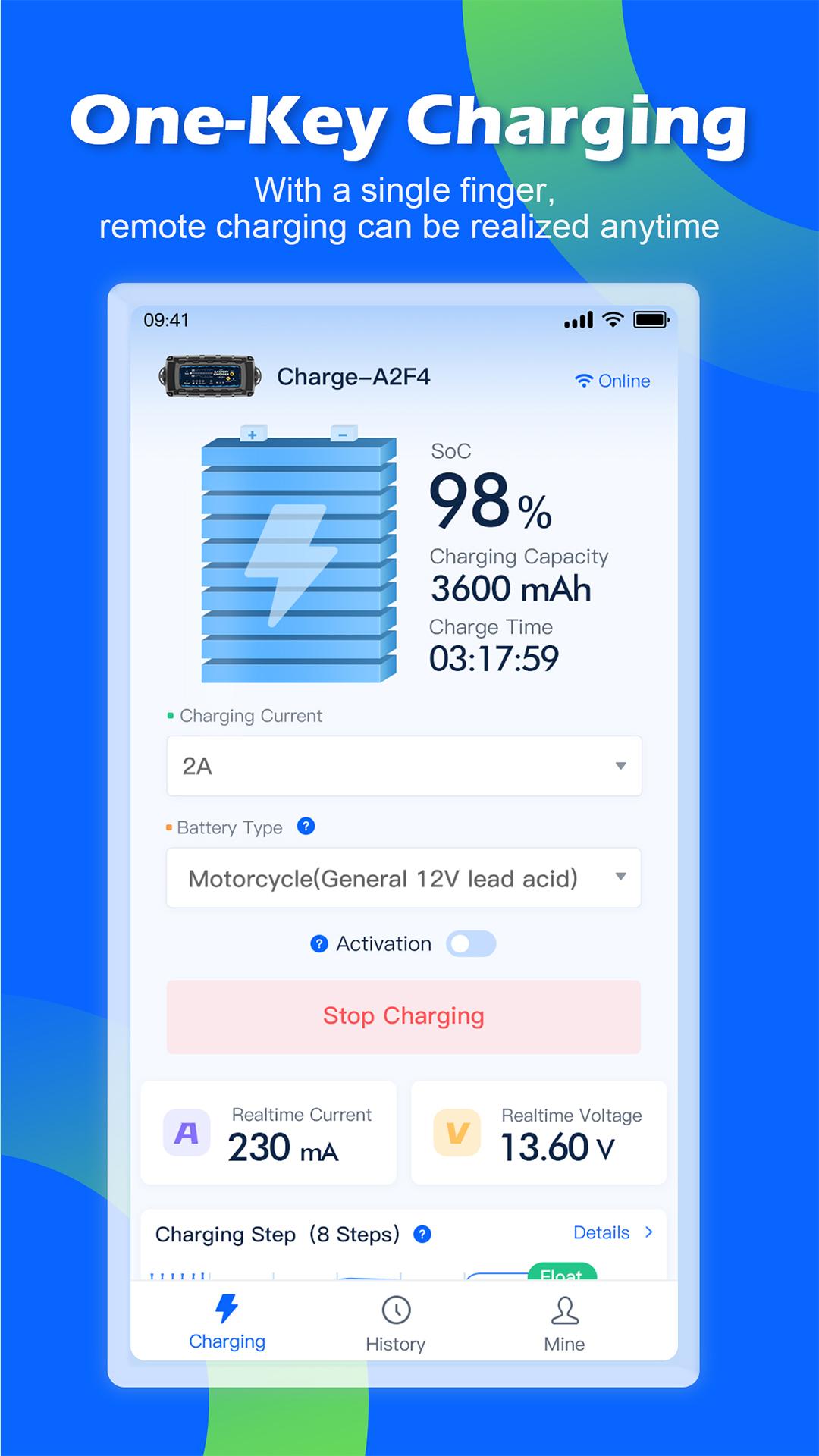 * Menjana laporan sejarah pengecasan secara automatik, semak prestasi pengecasan bateri pada bila-bila masa.