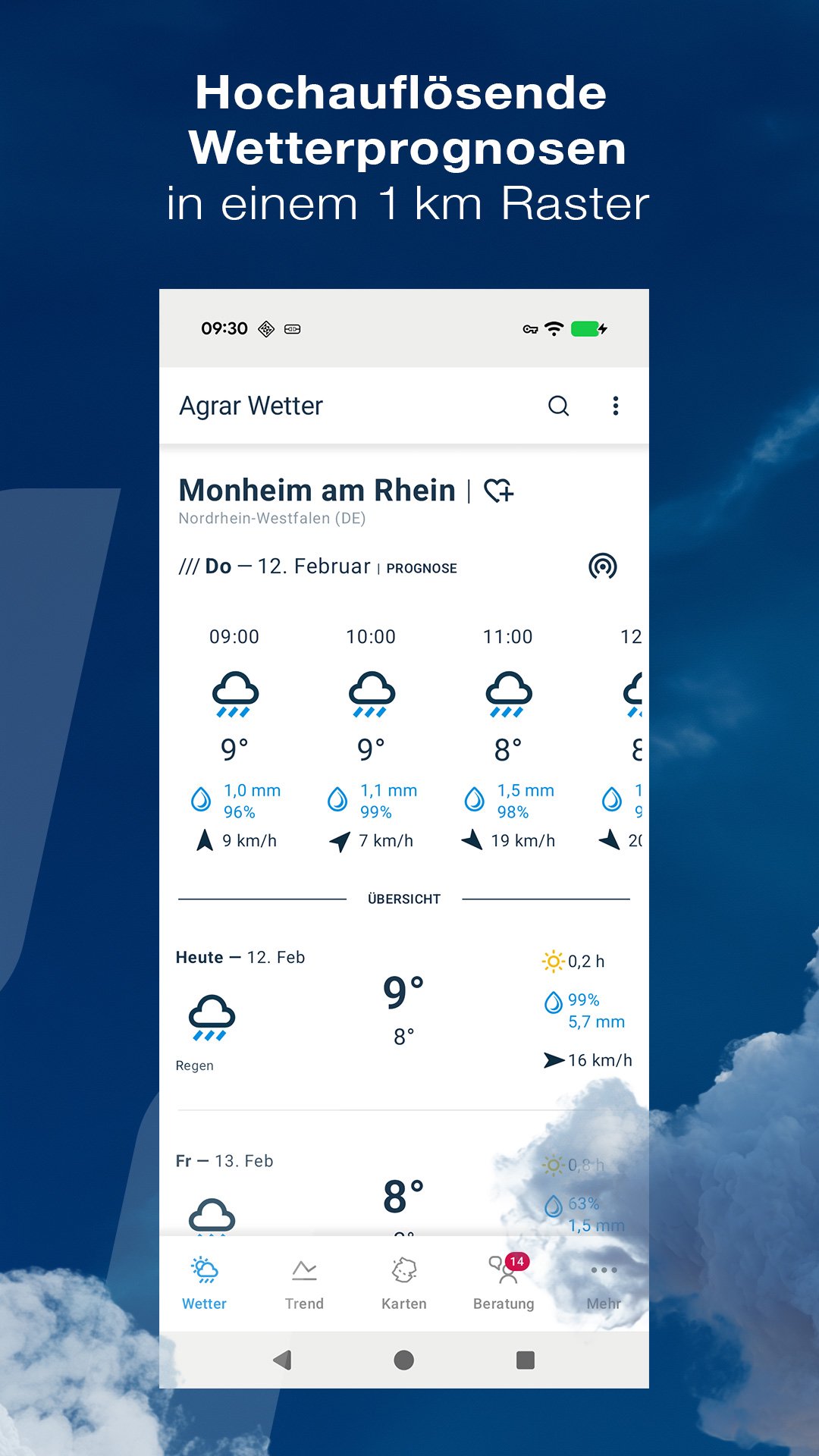 Perkhidmatan cuaca premium adalah percuma dan tersedia secara eksklusif untuk pengguna berdaftar agrar.bayer.de.
