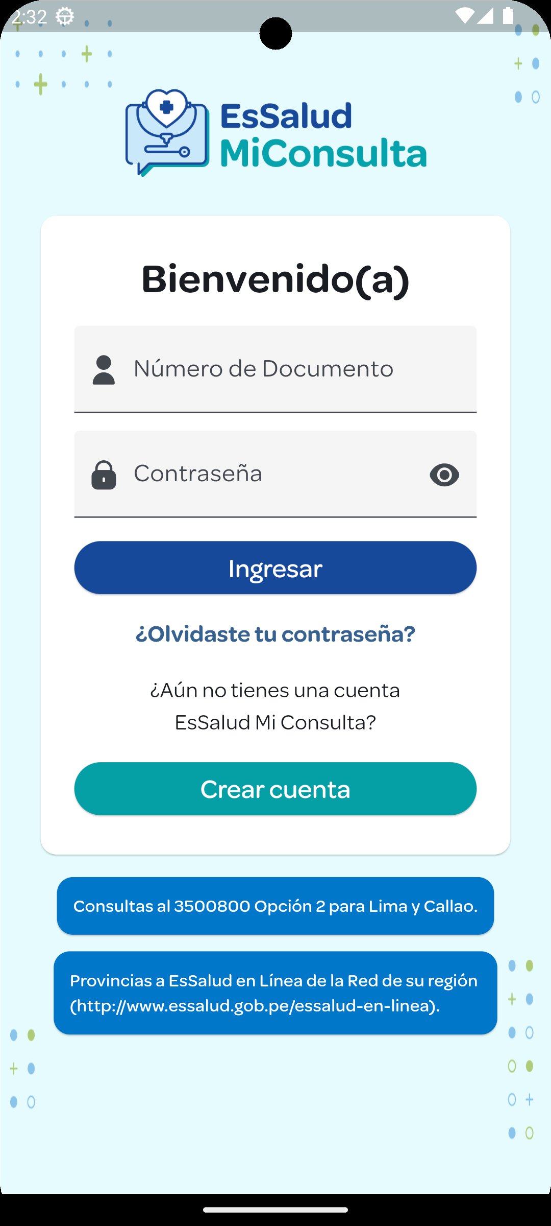 Aplicación que EsSalud pone a disposición de sus Asegurados, a fin de consultar las Citas Programadas, Recetas Emitidas, Atenciones Pasadas, Solicitudes de Cita que aún no han sido atendidas y el Seguimiento del Trámite de Referencias.