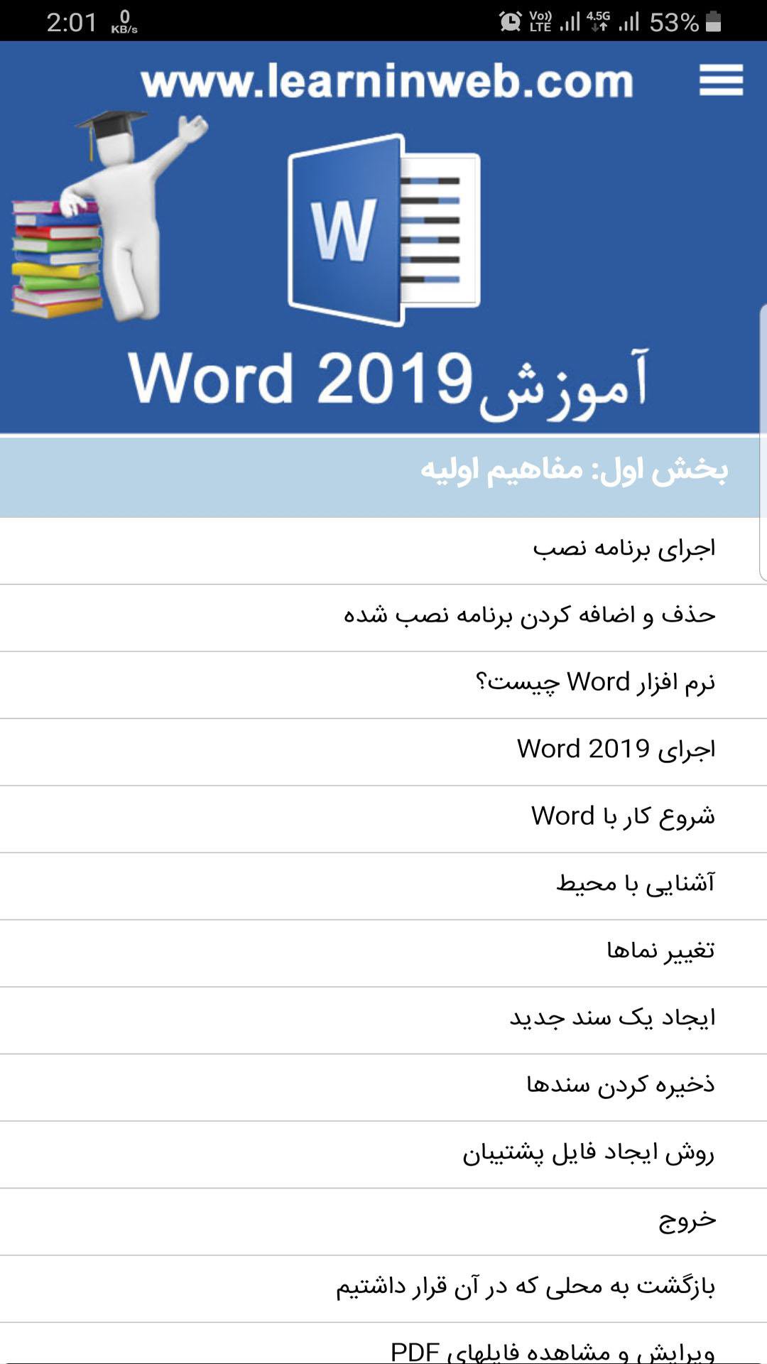 آموزش Word 2019, proveniente del desarrollador Learninweb.com | انیاک, se ejecuta en el sistema Android en el pasado.