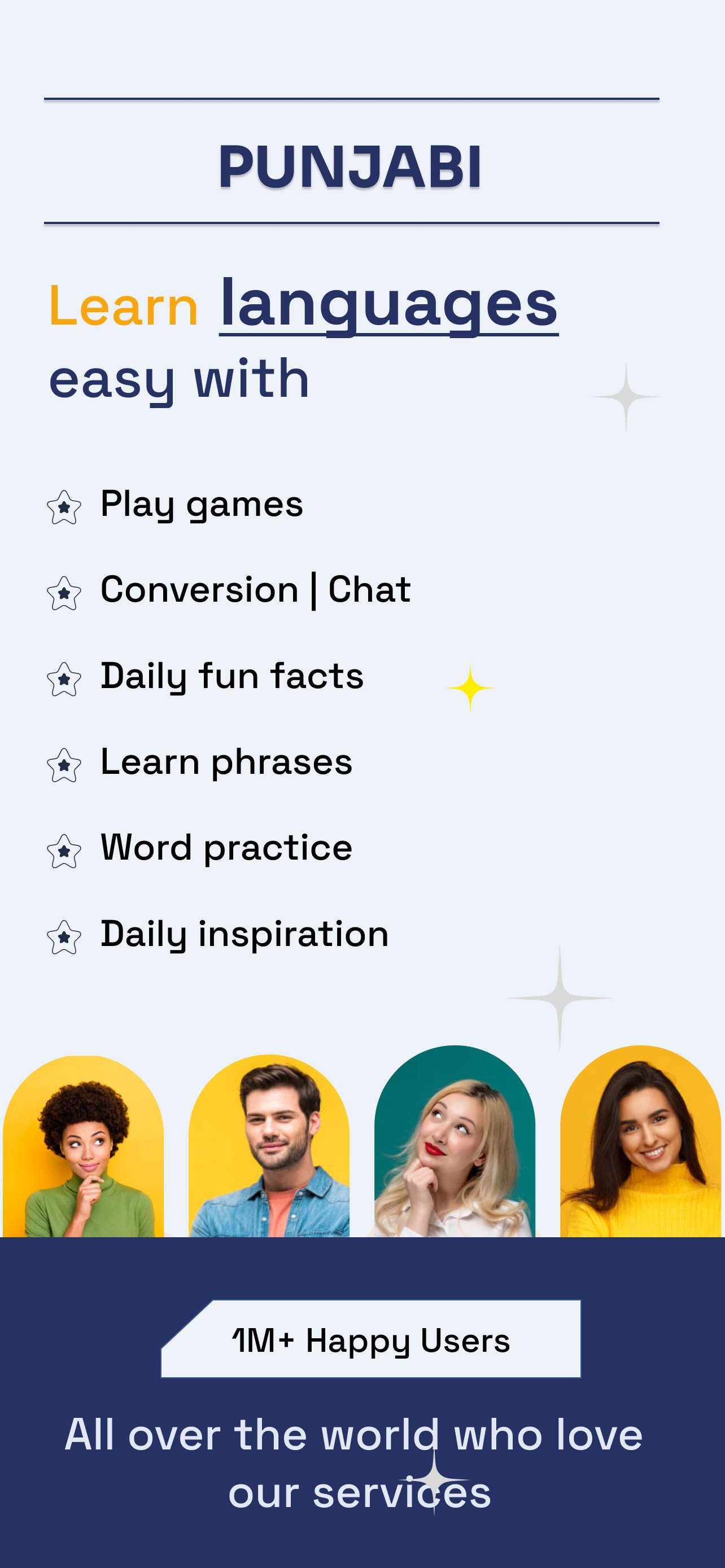 Learn English to Punjabi for only a few minutes a day! Fun and stress-free way with the Punjabi Translator app. Enjoy English to Punjabi learning using vocabulary, phrases, games, chat, new words, Daily words, and many more features.