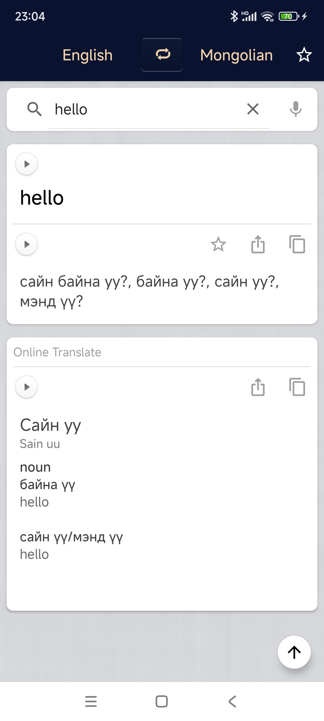- Translate result with example sentences (Mongolian example sentences is not supported)