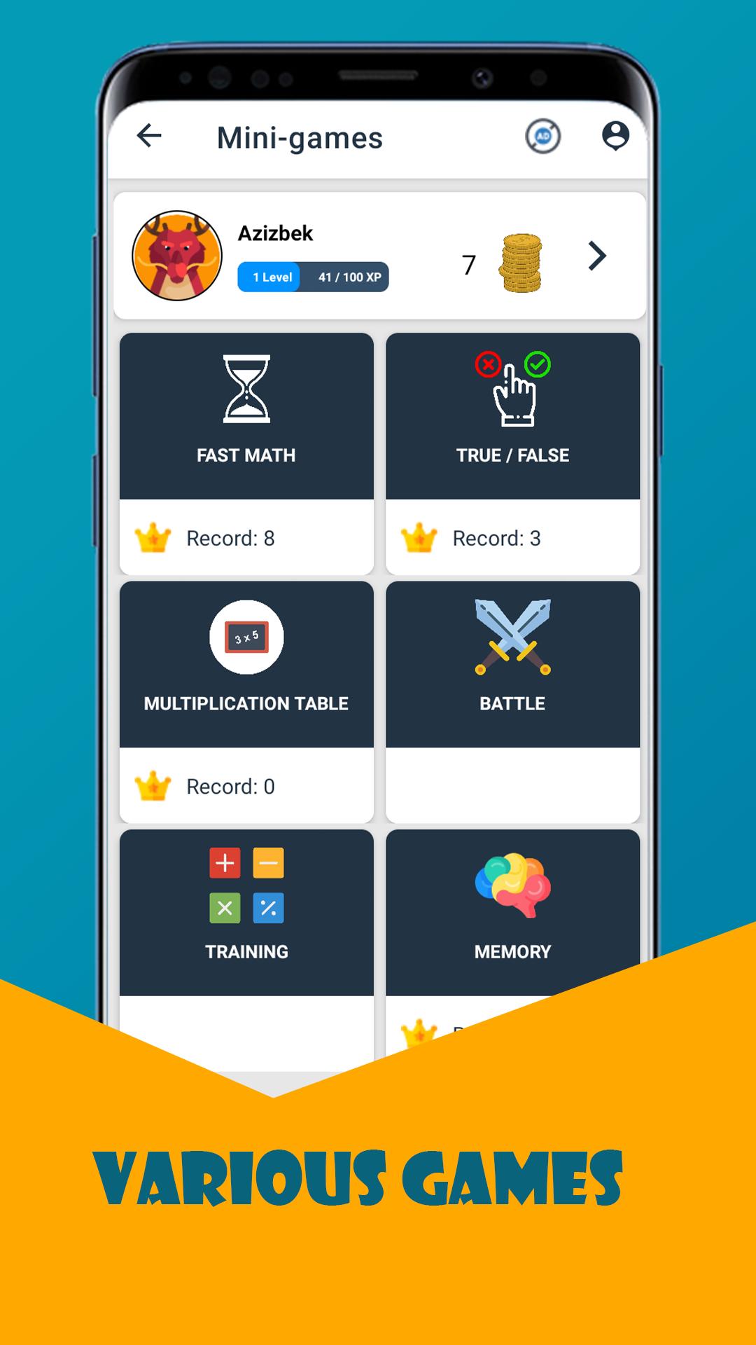 Daily Math training will help you to discover your inner math skills and see results fast. No matter if you are looking for challenging math games or want to train and improve mental calculation in a specific area, this is the right app for you. Download Math Exercises for the brain now for free and start your mental math success adventure!