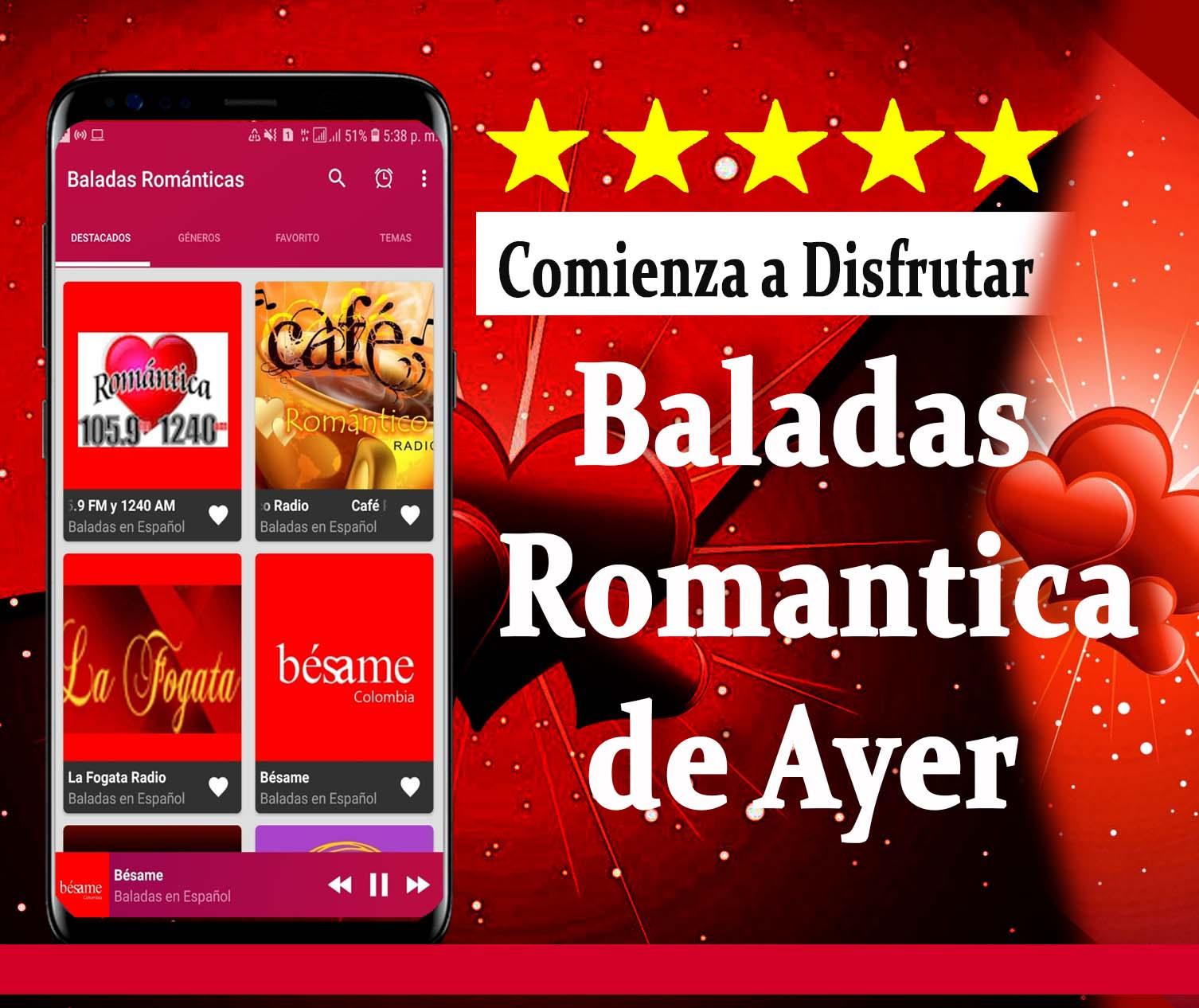 Si eres un amante del Baladas Romanticas radio en vivo, esta aplicación es perfecta para ti. está hecha para que pueda disfrutar baladas románticas inolvidables de los recuerdos de Ayer donde puede elegir entre, entretenimiento con radio baladas viejitas románticas en vivo de los diferentes intérpretes radio que transmiten en vivo.