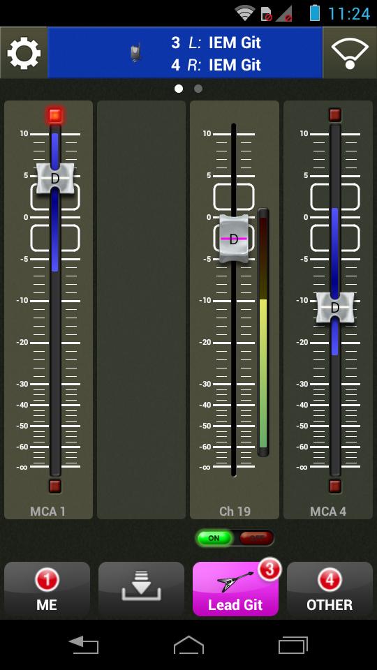 - Assign any combination of inputs to any of the four available MCA (mix control association) faders in the app