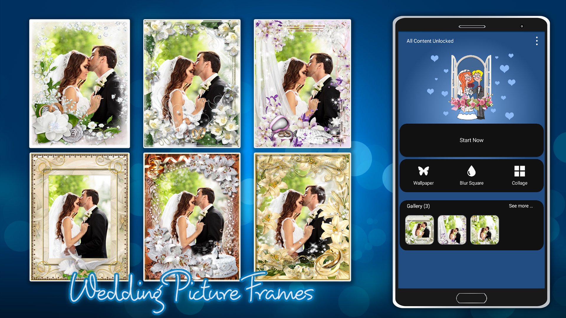"Wedding Picture Frames" is application collage photo with wedding picture frames for the couples, with a simple interface and easy to use, it will create wonderful wedding picture frames with high definition