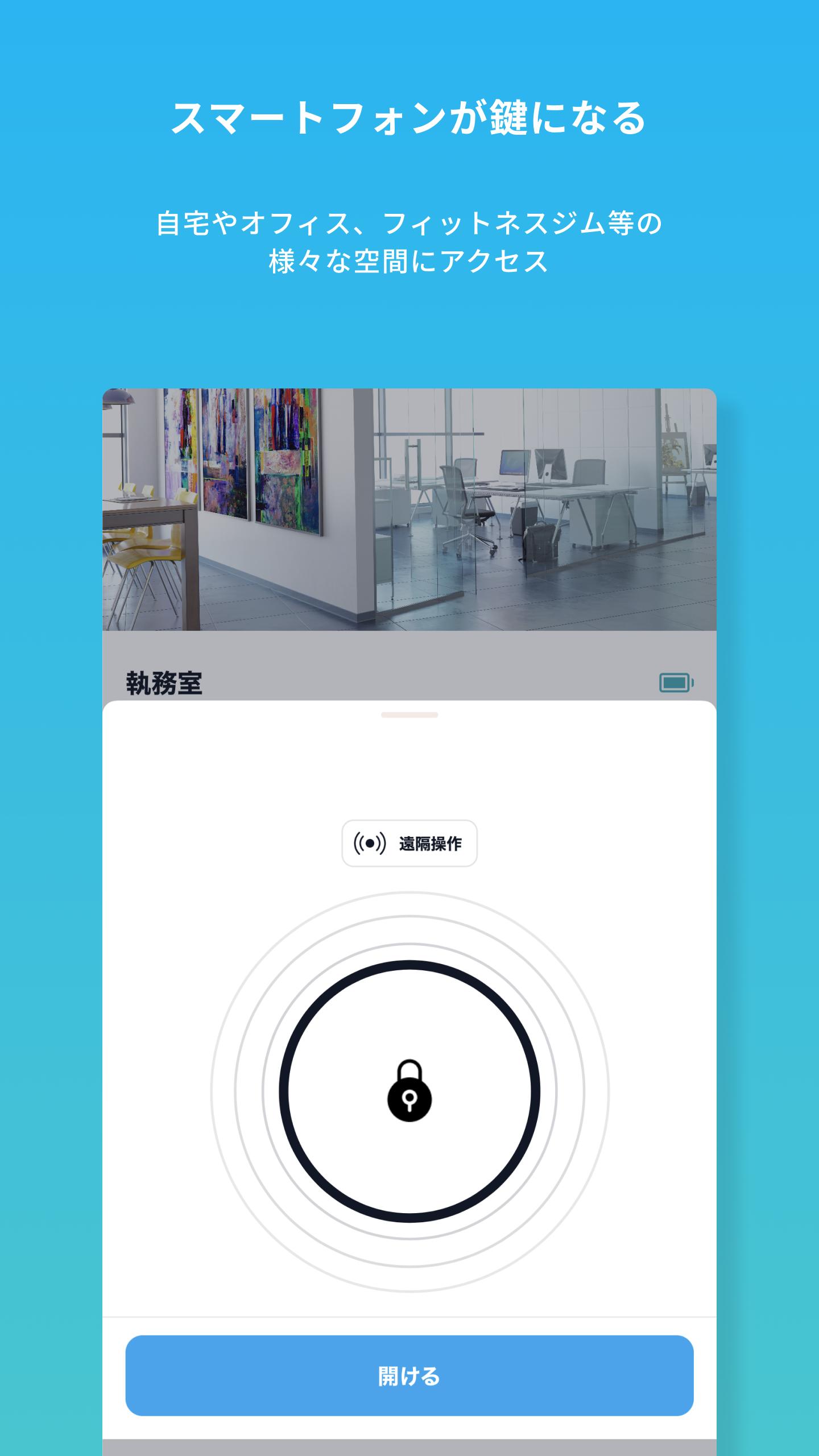 You can unlock the door with the app. You can increase the space you can access by receiving a duplicate key with your Akerun account. Compatible with various electric locks, automatic doors, and gates.