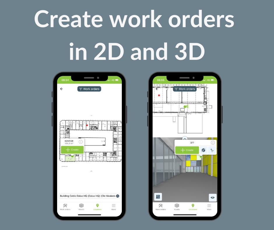 Create work orders with photos, details and placement on 2D and 3D drawings on the spot - even offline.