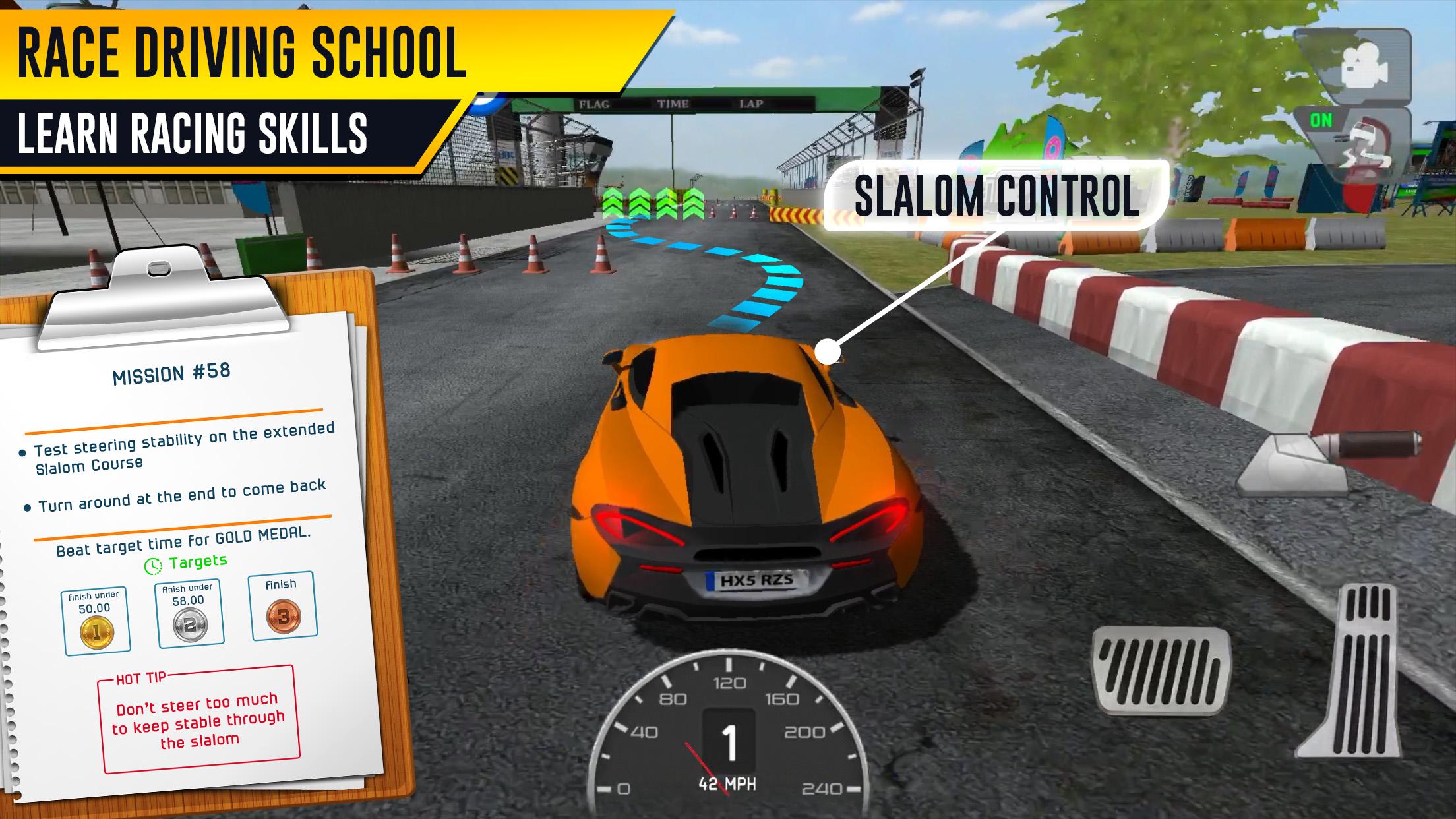 Enter various Driving Test events such as Slaloms, Braking Tests, Racing Lines & Apex Tuition, Drifting and Donuts! Learn the “Art of Race Driving’ through advice from the Virtual Tutor and put it all together on the Race Track to earn Medals and unlock faster cars! Can you beat the Tutor on the road?!