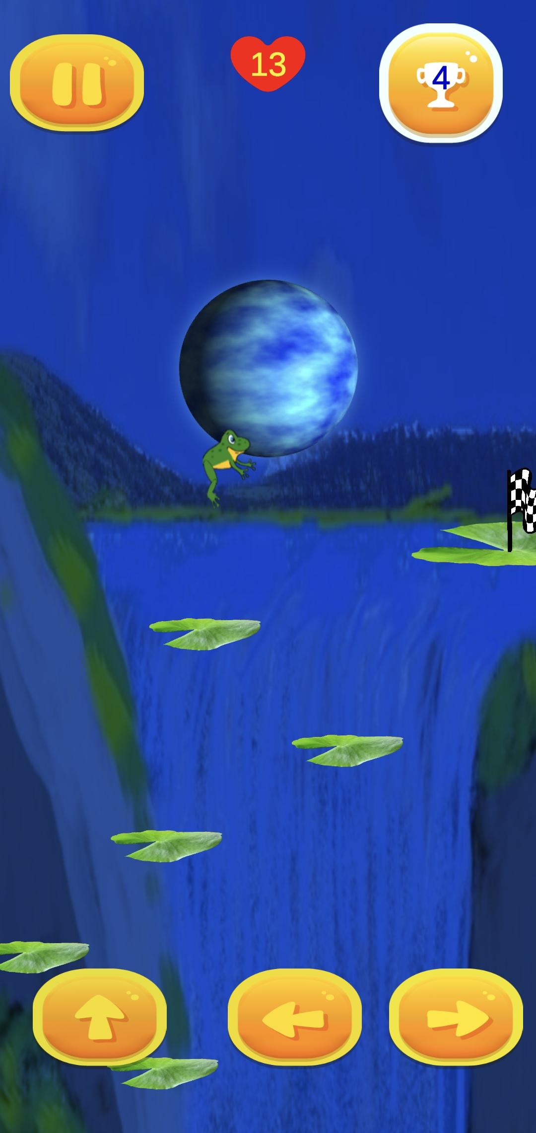 Starting from the bottom lily, jump up to each lily to get to the top, collect hearts on way up for extra lives, each level completed the camera moves faster and for every level complete awards you with 2 extra lives .