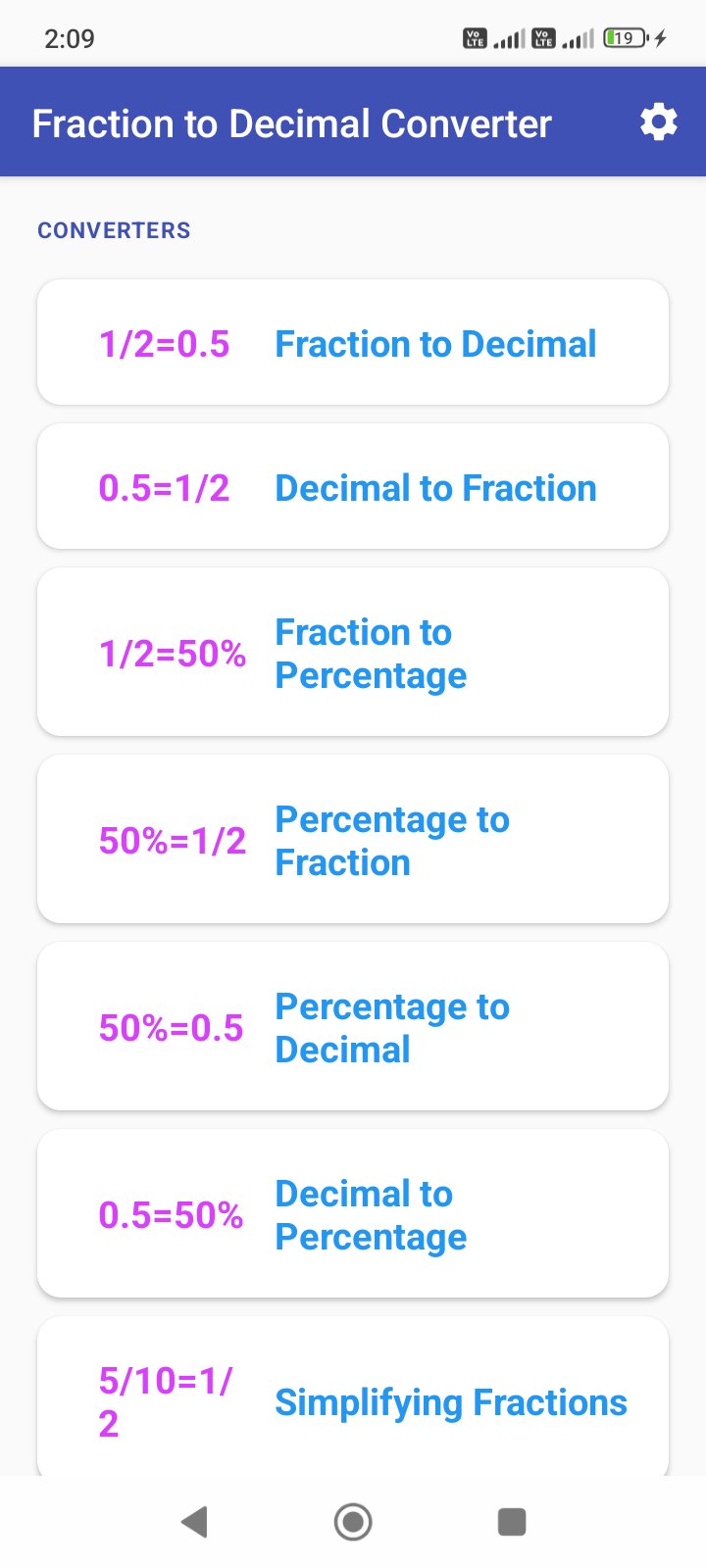 The easiest way to convert between fractions, decimals, and percentages. Whether you're a student solving homework, a teacher preparing lessons, or a professional needing quick conversions — this app has you covered.