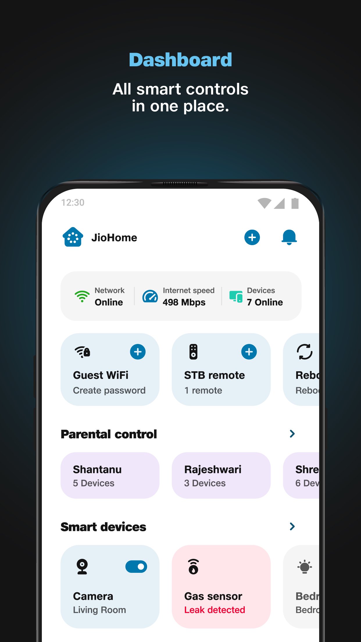 Experience unmatched convenience and seamless connectivity with the JioHome app! This state-of-the-art app allows you to effortlessly control smart devices, enhance home automation, and optimize your Wi-Fi experience. With features like a user-friendly soft remote, gamepad functionalities, and parental controls JioHome redefines digital living.