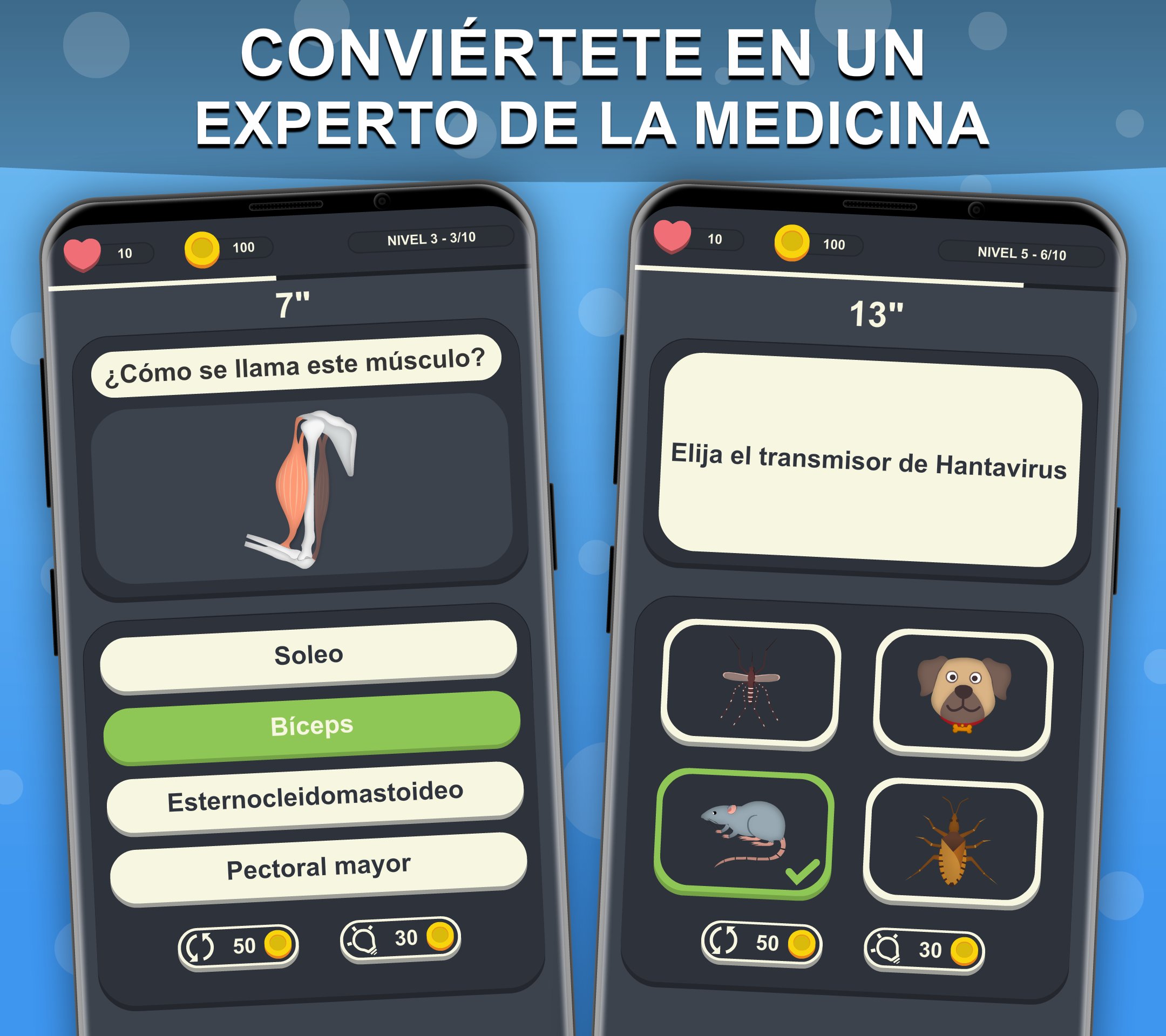 With Doctor Trivia you train and acquire new medical knowledge in a dynamic and interactive way, answering different types of questions.