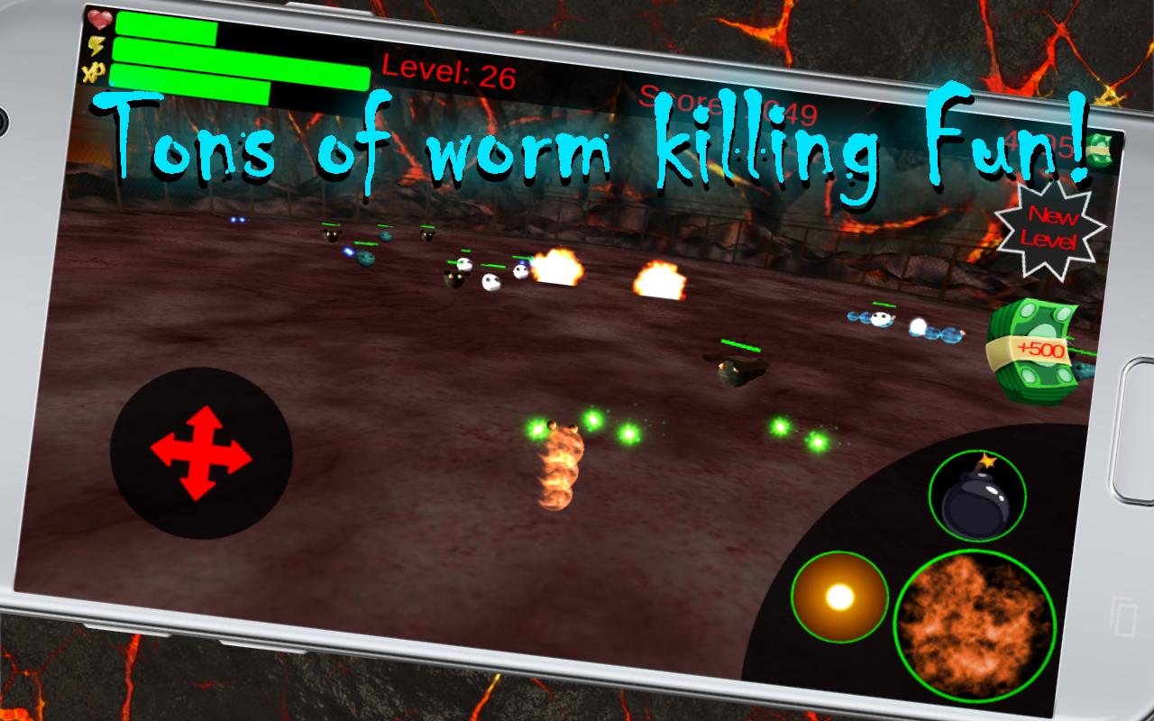 The longer you survive and the more Death Worms you kill, the more experience your character will earn. Death Worms has plenty of RPG elements to customize and improve your character - you’ll be able to upgrade your character’s stats, upgrade your weapons and attacks and recruit Rebel Death Worms to help you survive.