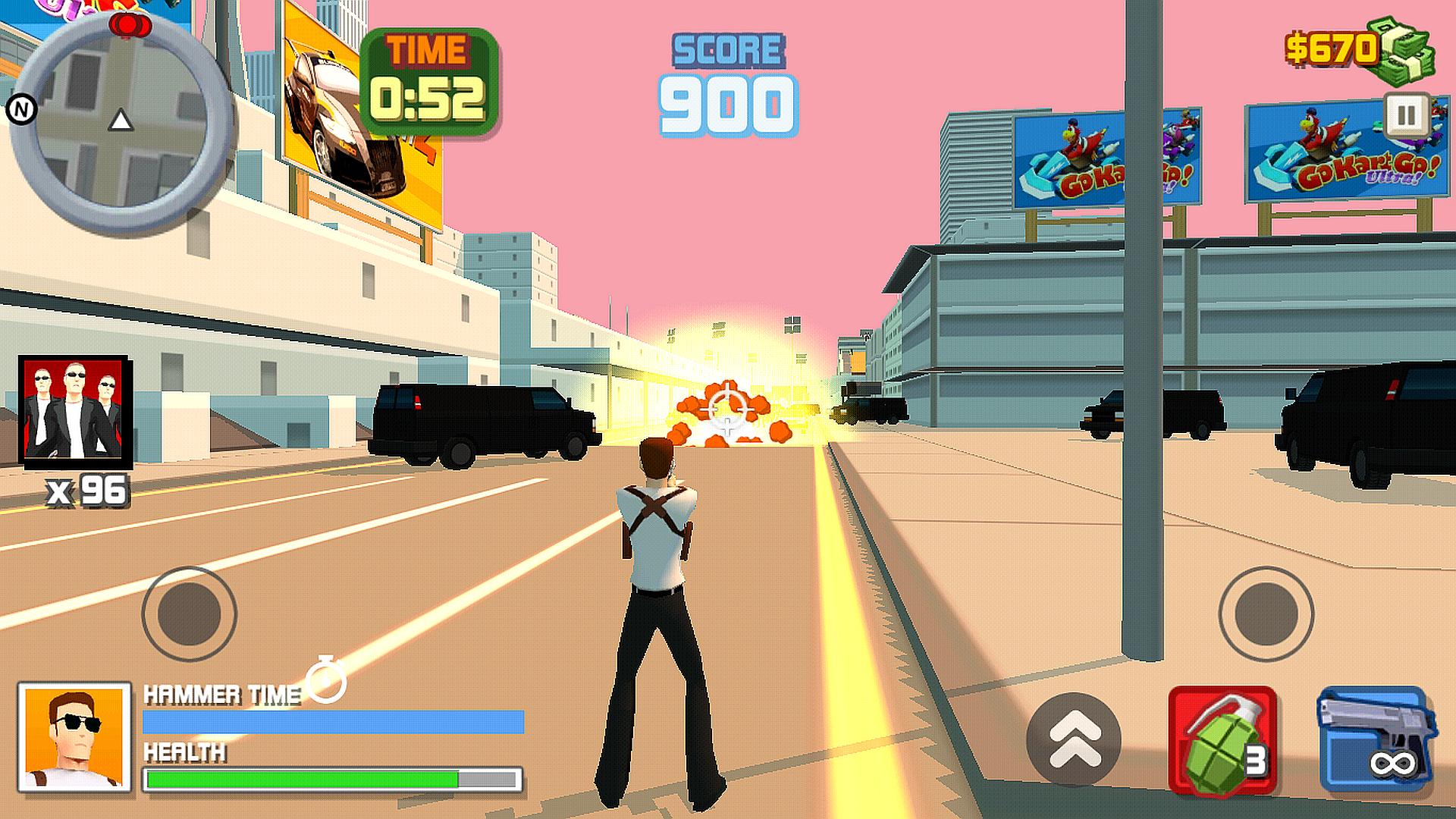 The game has about 30 levels, the beautifull store of weapons, achievements and other cool stuff.