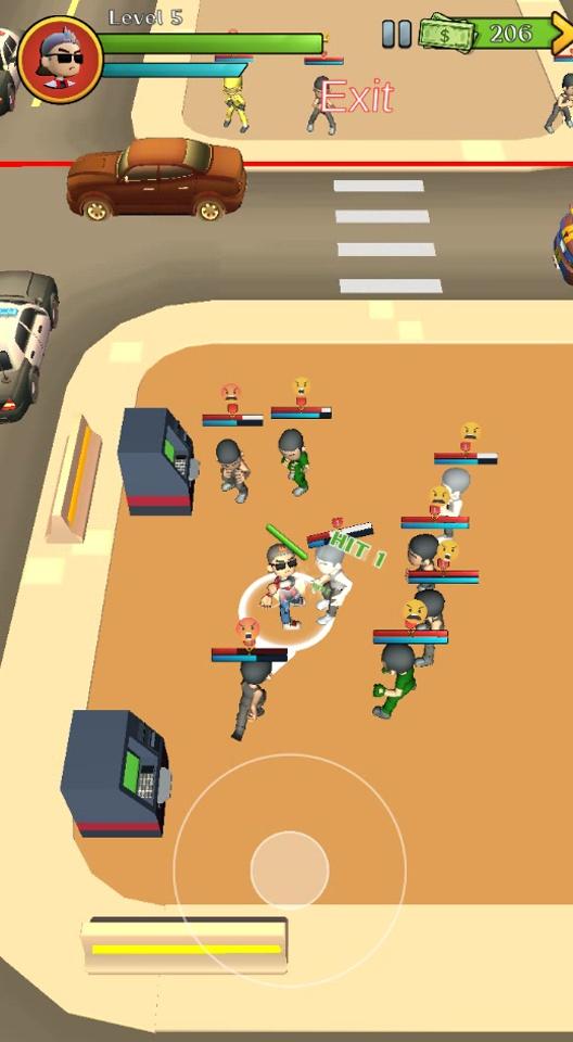 To start the fight, move the fighter closer to a bully. The fight will start automatically. Move the fighter around to inflict maximum damage. Change the angle of the attack if a thug blocks it.