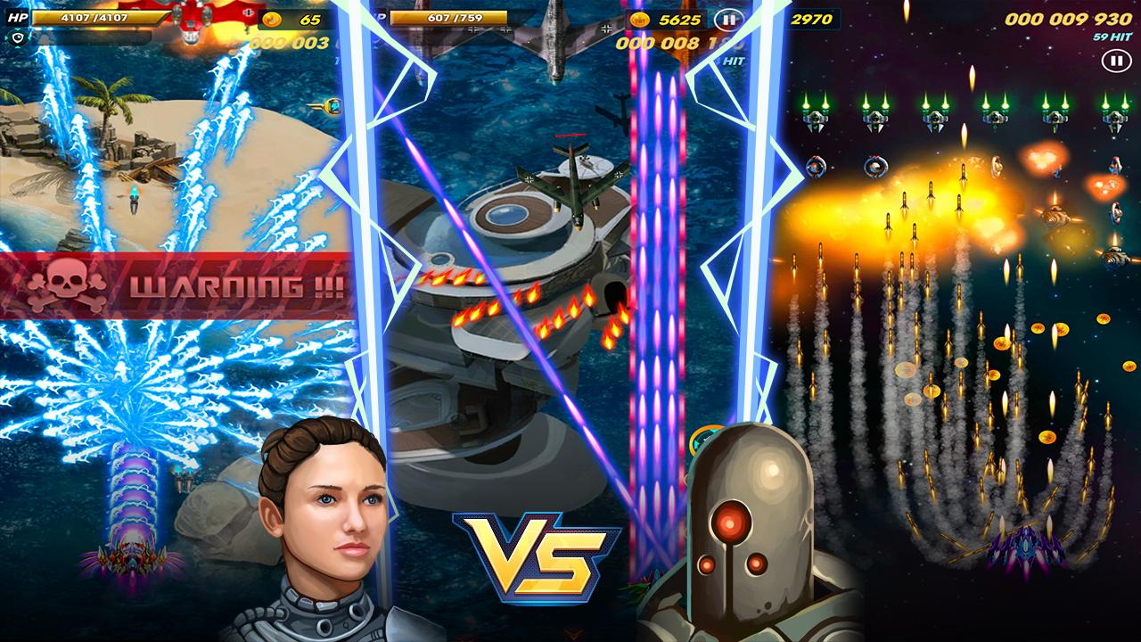 Try to control your AirCraft to destroy all enemy ships, defeat the last boss and complete the mission with space shooter galaxy shooting. Do not let the enemy shoot your plane and fight. At each level you will get a SpaceCraft Card, Diamonds and Gold. Do not forget to use them to upgrade your Space Scraft and make it stronger. You can also unlock powerful spaceships with Card or Crystal or in fighter games air battles.