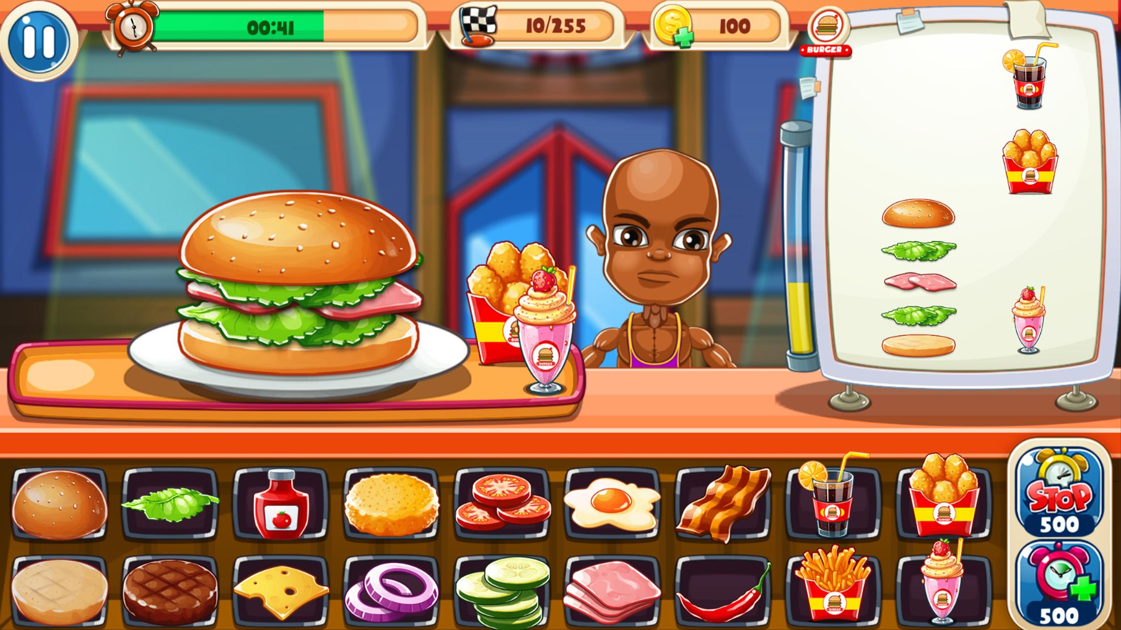 Start your hot cooking journey when the customer comes and order any burger, your mission is to prepare ingredients, cook all food item and serve them to the customer in a limited time. When happy cooking hours start you need to be fast even during rush time, As soon as you will earn more coins and stars you will unlock more cooking restaurants worldwide.