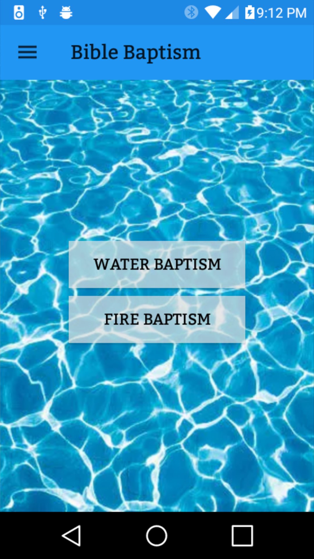 This app is a concise reference of bible scriptures about baptism. Learn about the different types of baptism mentioned in the Bible, and the teachings about baptism given to believers by Jesus Christ. The types of baptism include:
