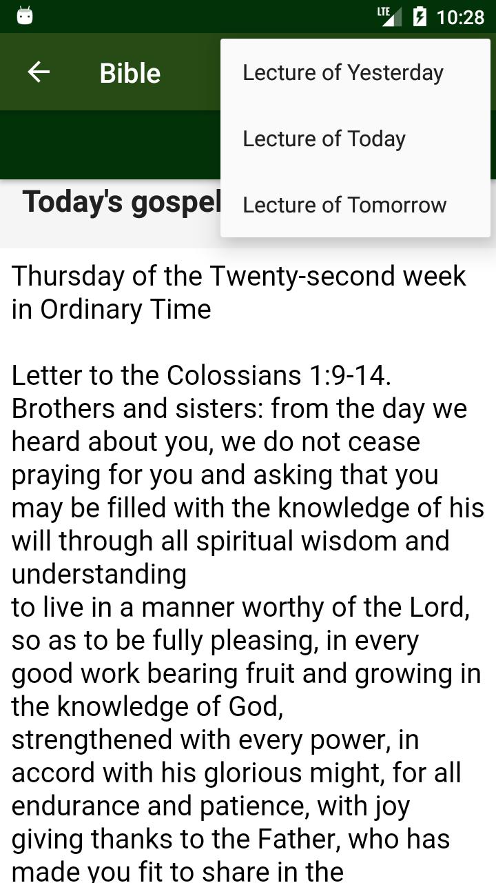 • Daily gospel. Follow the daily lectures, first lecture, psalms and the gospel of the day.