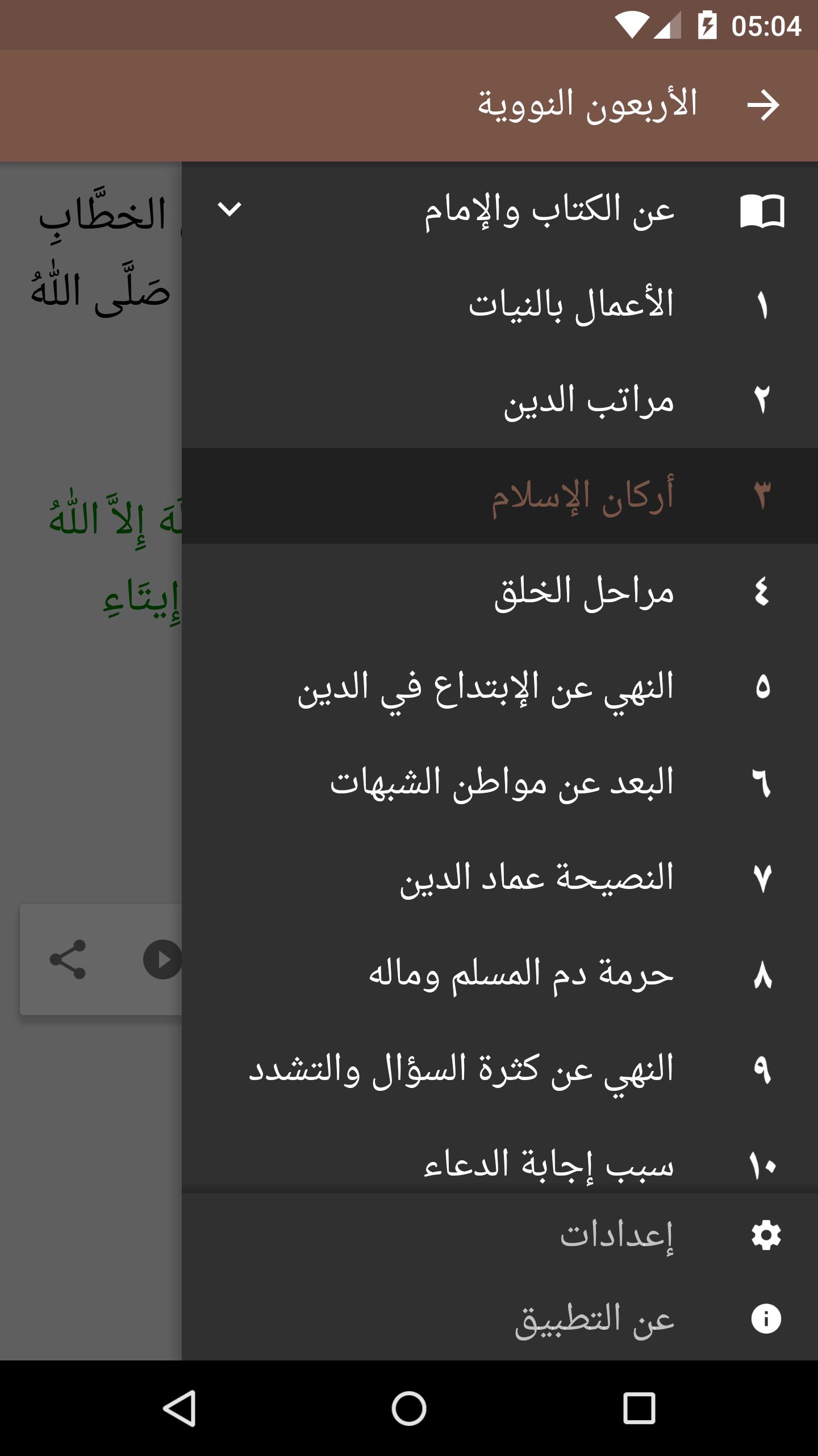 This app contains all the hadiths from the Nawawi's Forty (الأربعون النووية) book with audio and explanations.