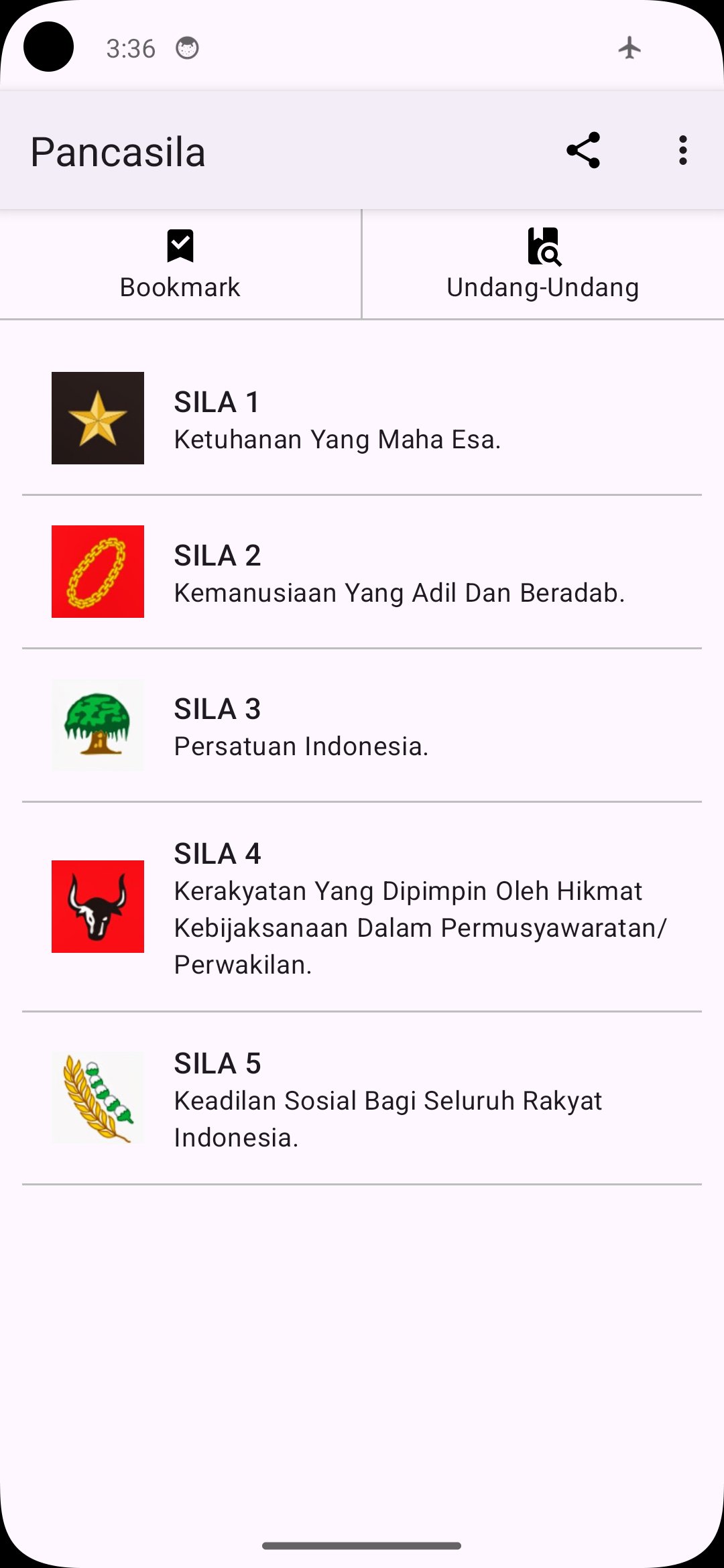 This application provides information about the points of Pancasila & the Law.