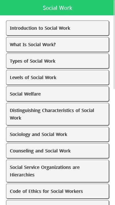 Learn social work app is an educational application. If you are looking for basic social work books so you are in a right place. This application will provide you most important and informative lessons. This basic social work book app will give you definition and classification.