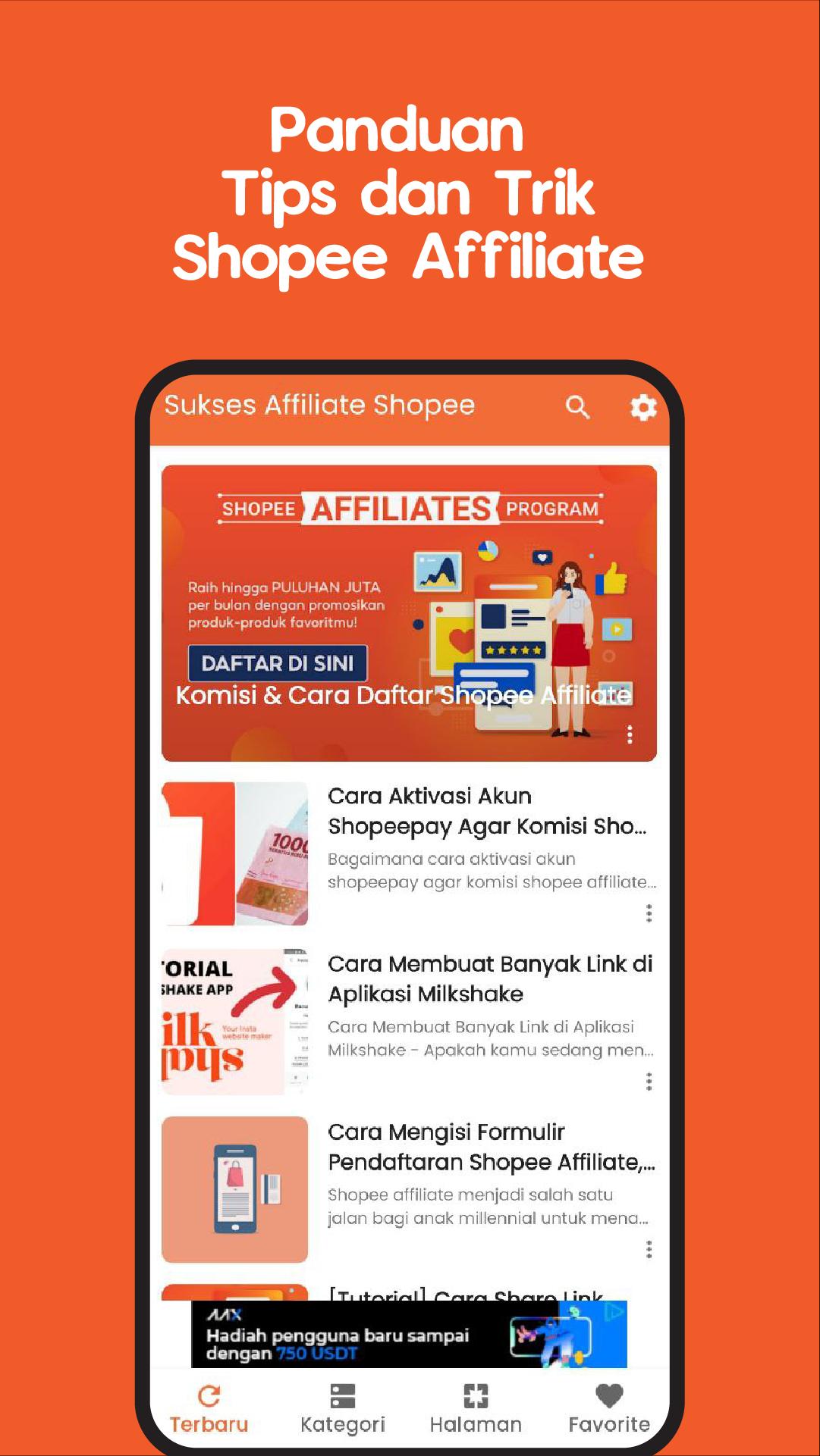 This application contains a guide to tips and tricks to a successful affiliate shopee tutorial. Starting from how to register, tricks are immediately accepted by the affiliate program to marketing strategies and spread shopee affiliate links.