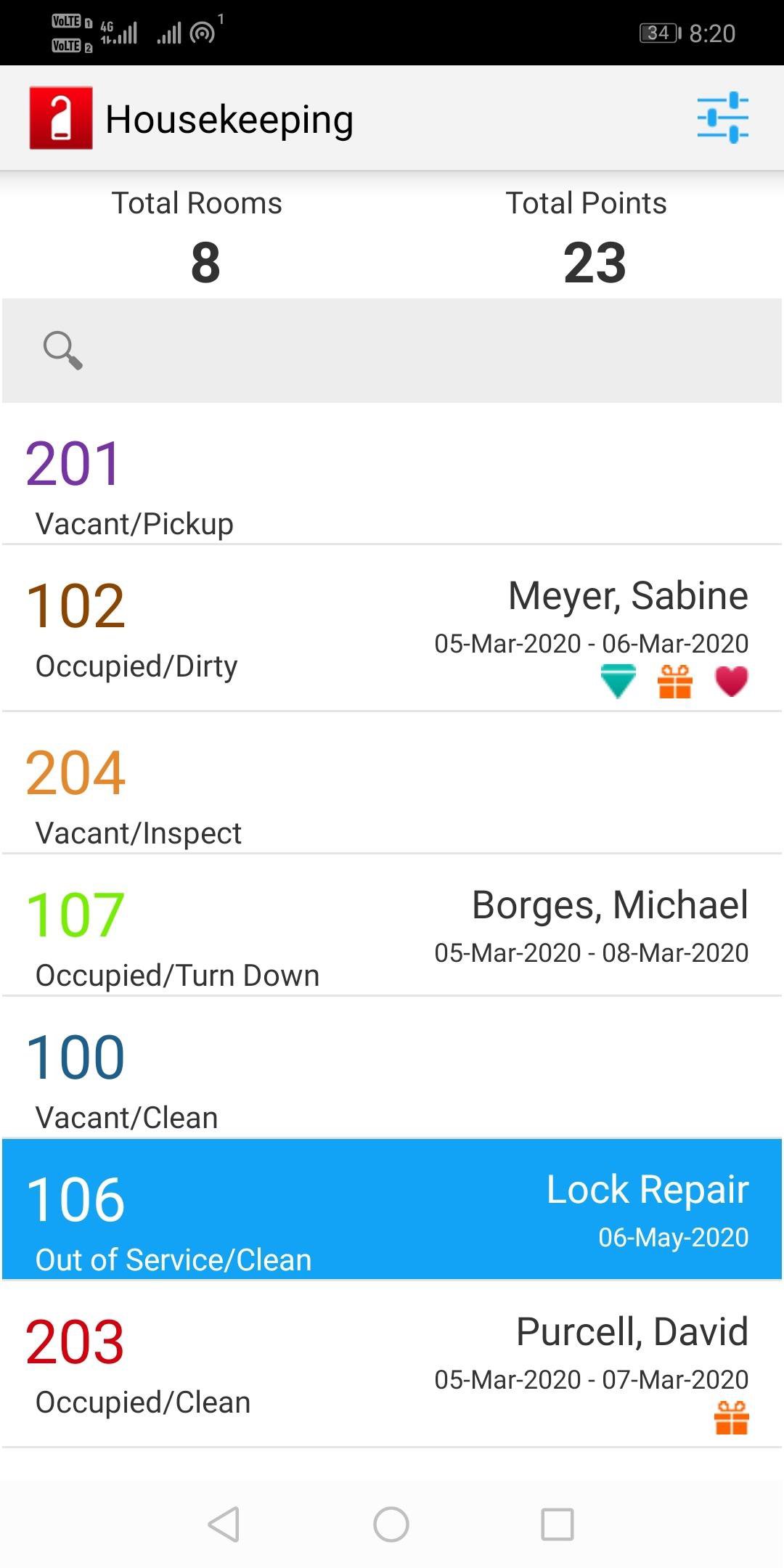 "Infor HMS Housekeeper" for Android Phone will allow a housekeeper to view a list of rooms which they are assigned to clean for that day. The housekeeper will also have the ability to see specific Guest Details and update the Room Status of each room assigned to their section. In addition "Infor HMS Housekeeper" allows housekeepers to flag guest rooms as "Do not disturb", so rooms can be serviced at a later time.