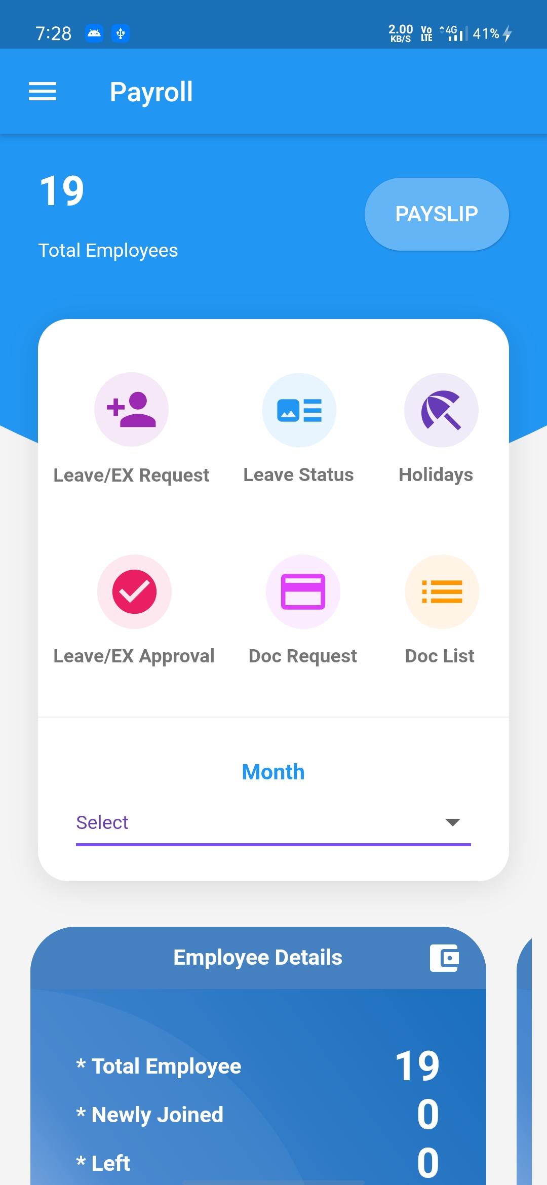 11. Payslip can be fetched for the selected month as well as downloaded.