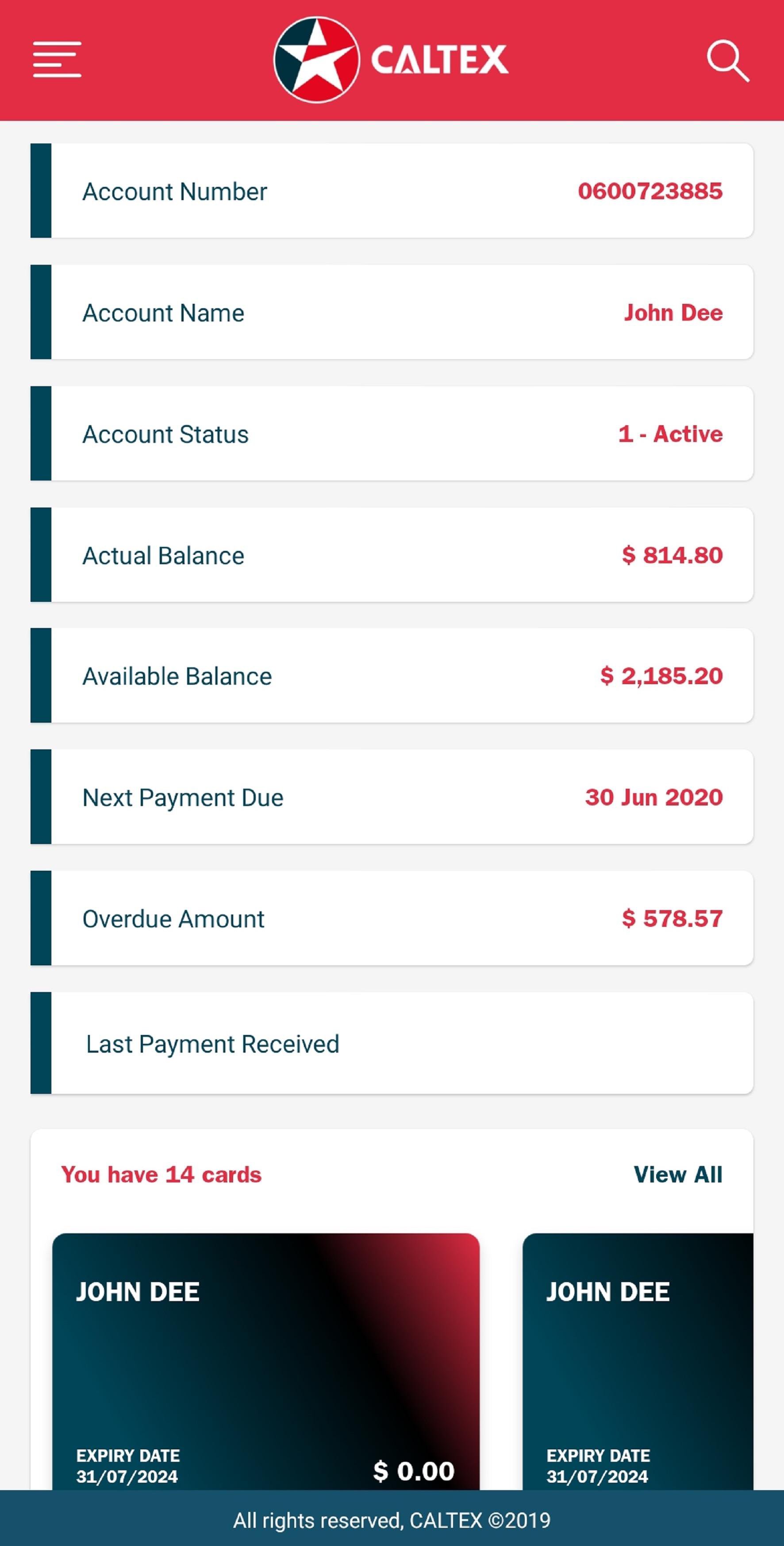 • View account details, balances, recent payment and next payment due
