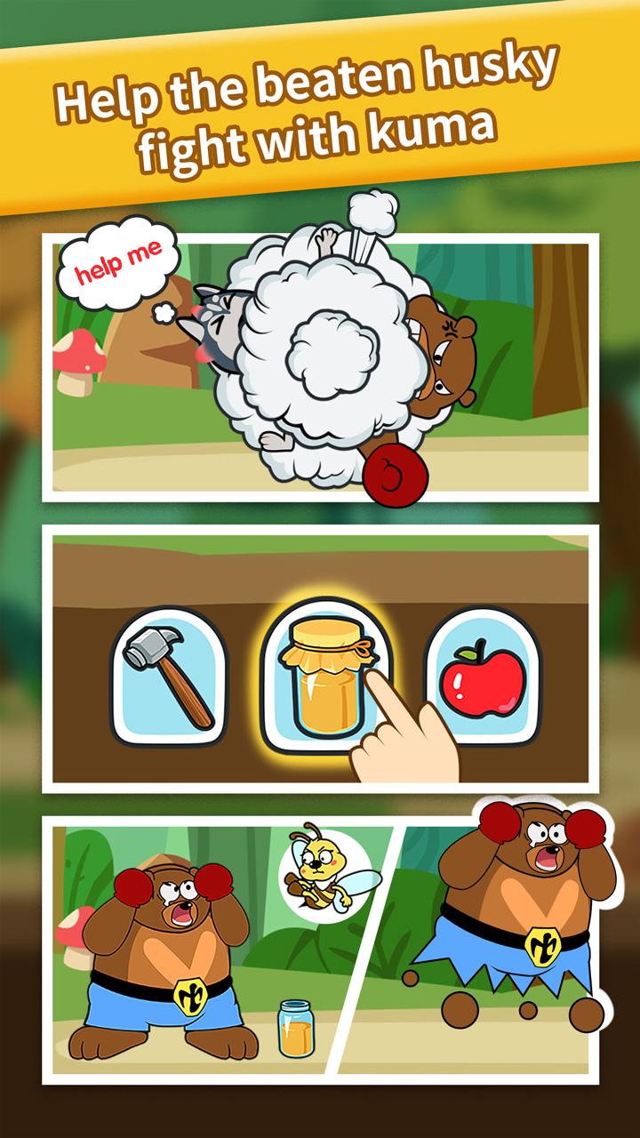 The puzzles in the game incorporate various characters and stories, and are connected together through interesting plots. The Husky, who is stupied sometimes, is accidentally involved in his own black hole of brain power. Various strange brain puzzles are waiting to be solved, such as: helping the Husky defeat all kinds of monsters, encountering new friends during the trip, solving robberies, and helping The glass man found the way to the castle and so on. There are no unsolvable puzzles, only unexpected think!