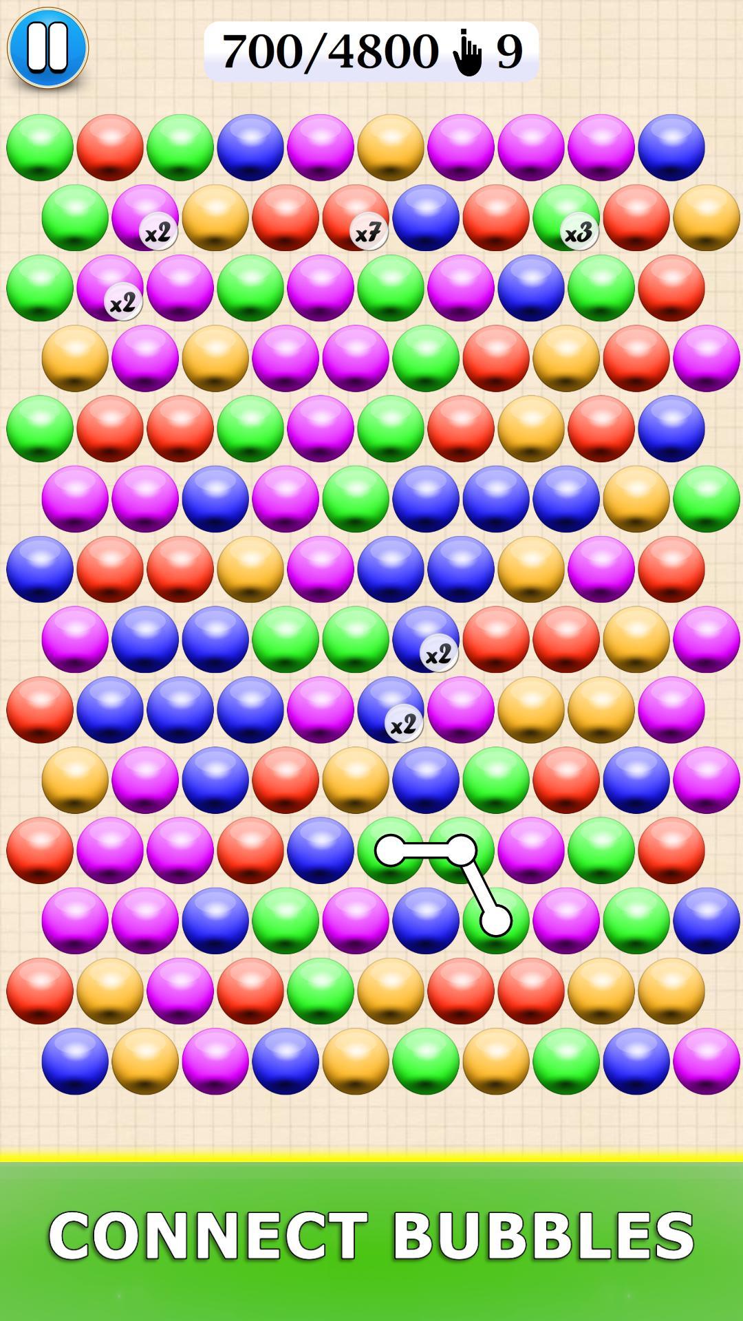 - Tap the screen and connect bubbles of the same color one by one.