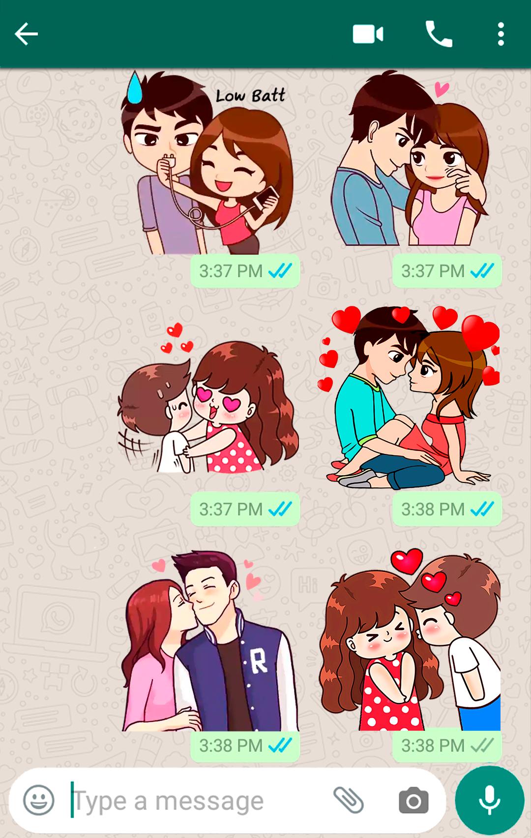 Romantic love stickers and a lot more love emojis for WhatsApp for loved ones. Enjoy these romantic love story stickers and share with your boyfriend / girlfriend on chat!
