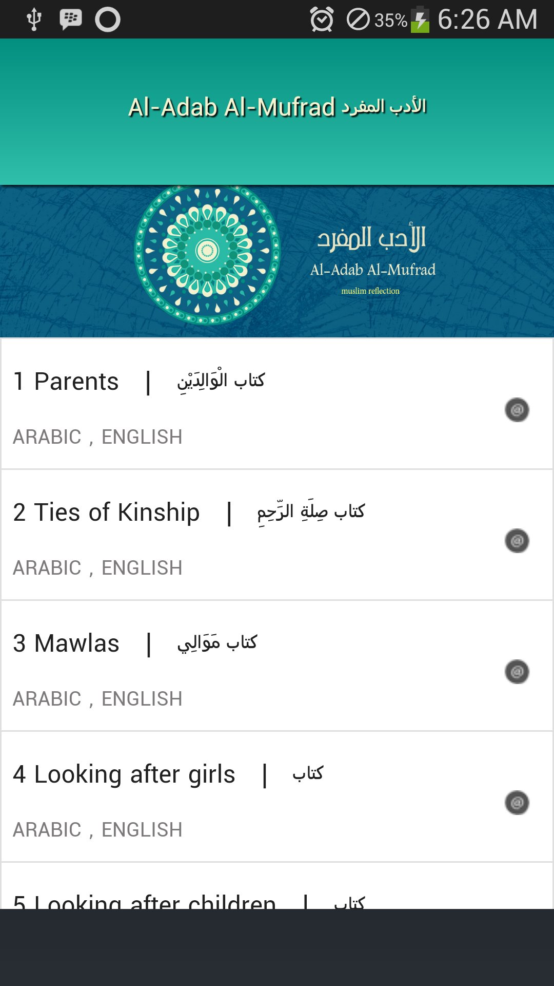 Ang Al-Adab Al-Mufrad, na nagmumula sa developer na muslim reflections, ay tumatakbo sa Android systerm sa nakaraan.