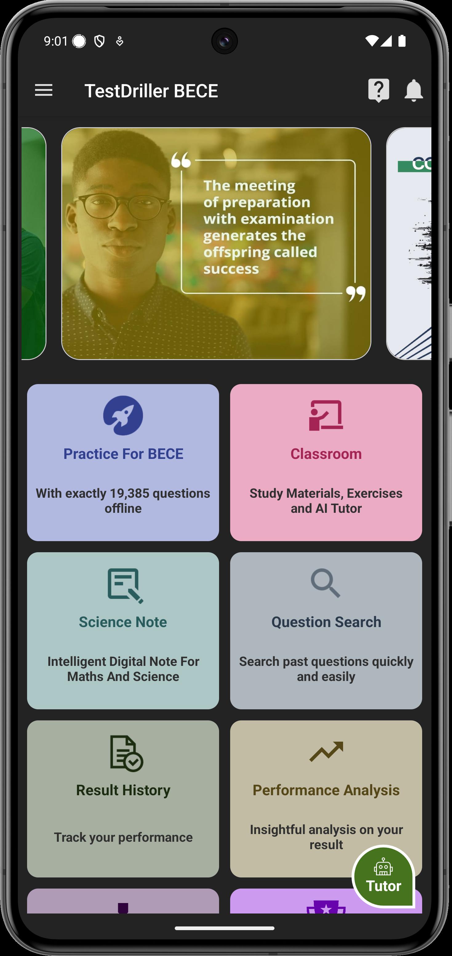 TestDriller for BECE is a comprehensive offline e-learning and testing app that helps candidates prepare effectively for Junior WAEC (BECE). It combines past questions, classroom materials, AI Tutor, Science Note, flashcards, and more—everything you need to succeed.