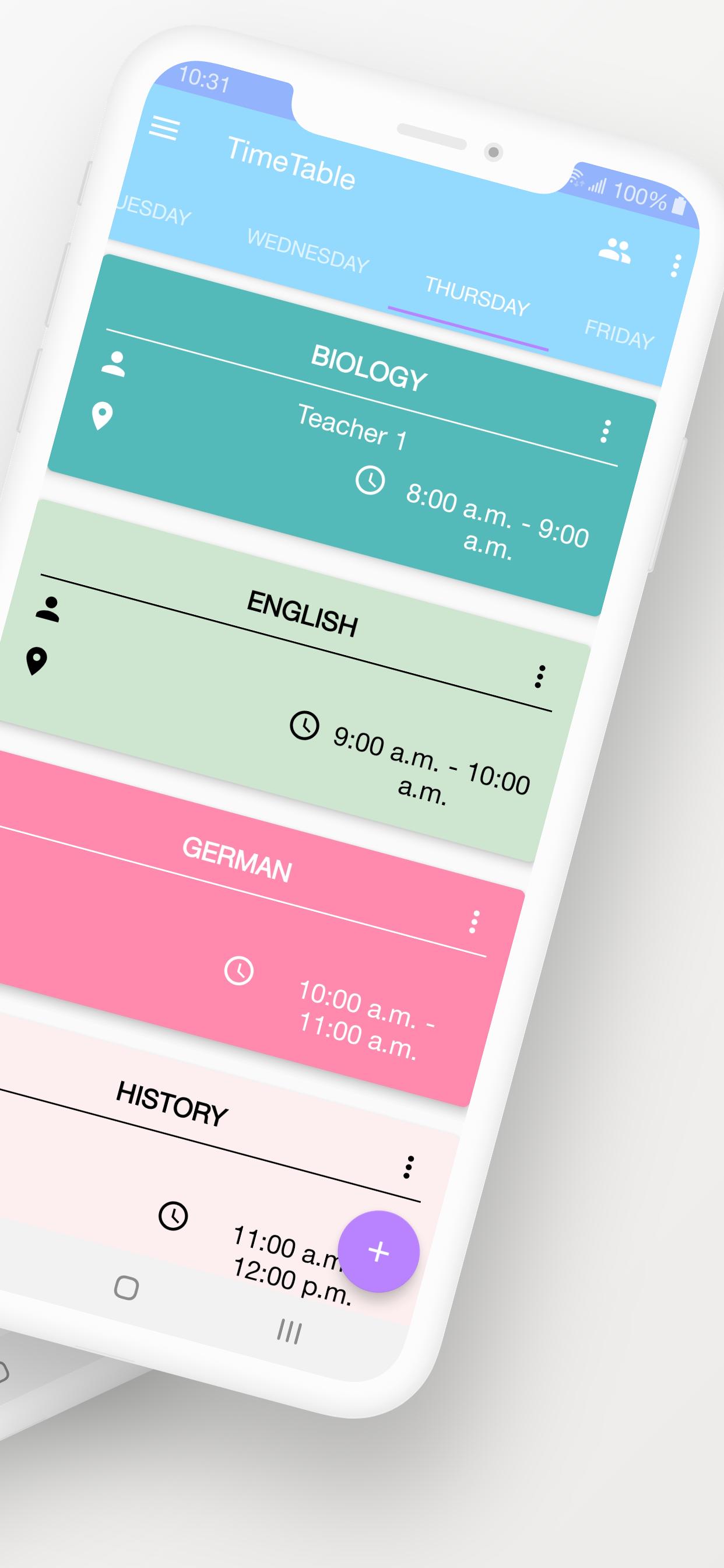 Easily enter your subjects, the times they are at and even share your created entries with your calendar to keep everything up to date. Notifications will help to ensure you never miss a class, assignment or exam.