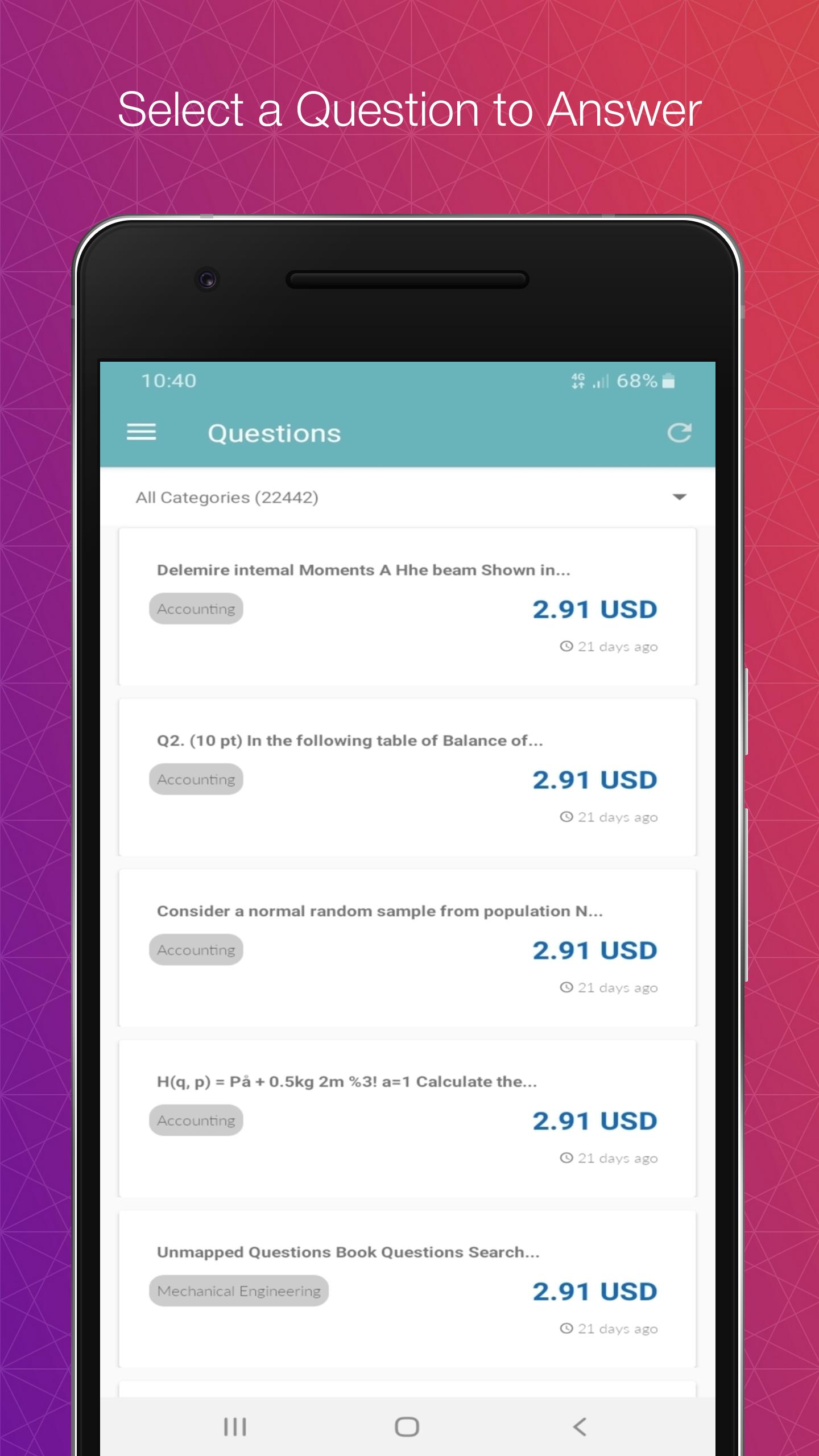 HelloExperts is paying a very handsome price for every question answered by the expert. The following categories are very popular for the students to post a question:
