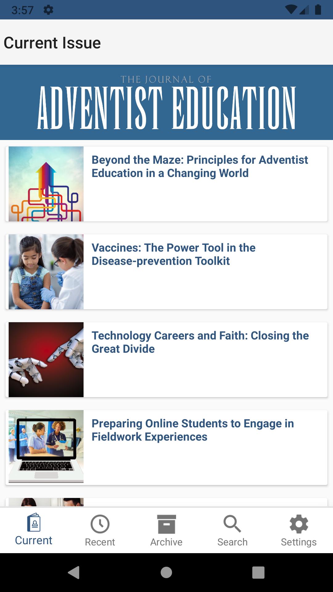 Ang Journal of Adventist Education, na nagmumula sa developer na Hope Software Services, ay tumatakbo sa Android systerm sa nakaraan.