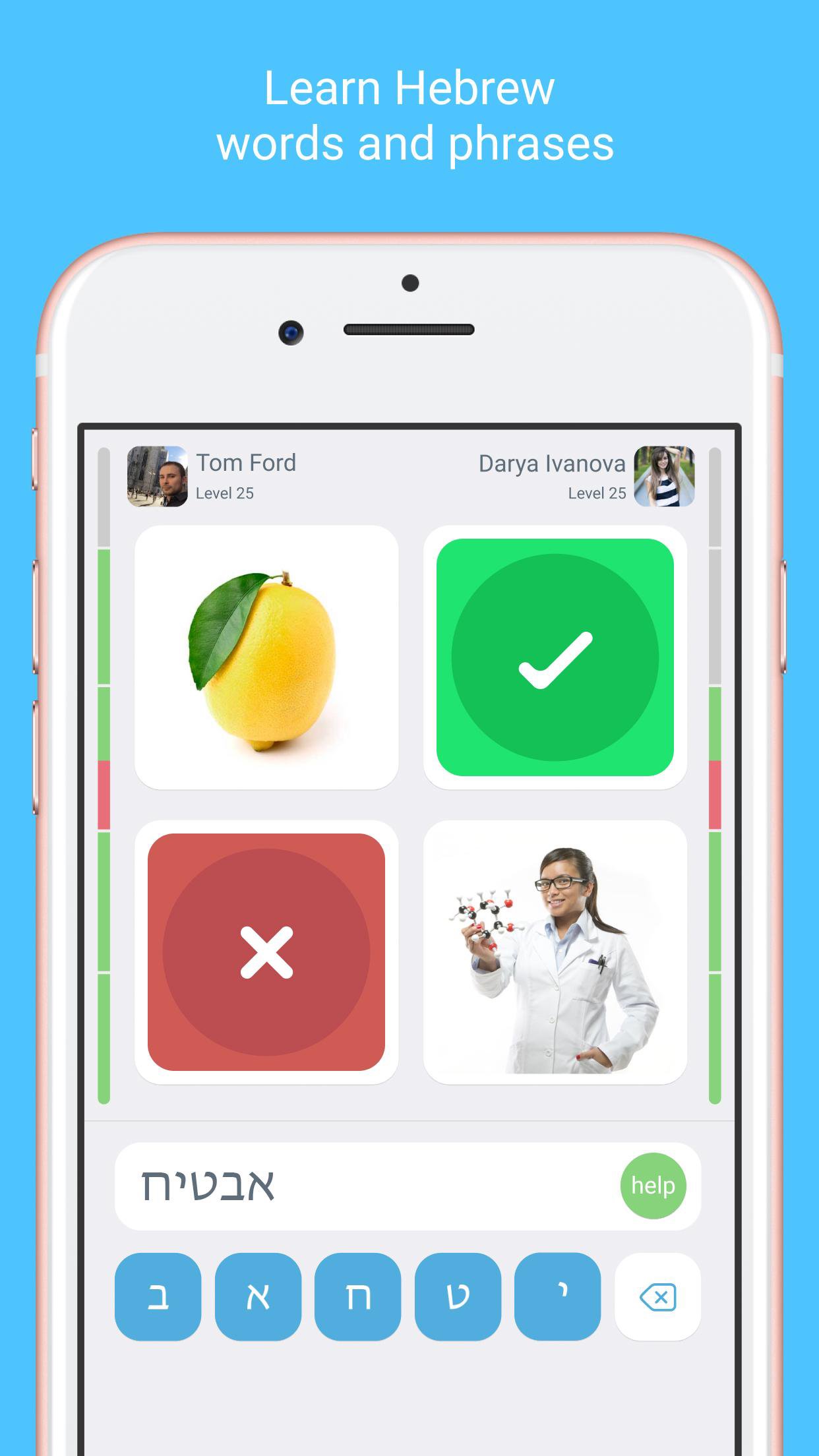To succeed in studying the Hebrew language, you need to use the materials studied as efficiently as possible. LinGo has only the most necessary things to learn Hebrew language phrases and words as quickly as possible and reinforce the studied material. The more often you revise, the better you will know and be able learn to speak Hebrew fluently. If you already know and speak Hebrew well, you will have an even greater time guessing Hebrew words and memorising them with millions of users around the world.